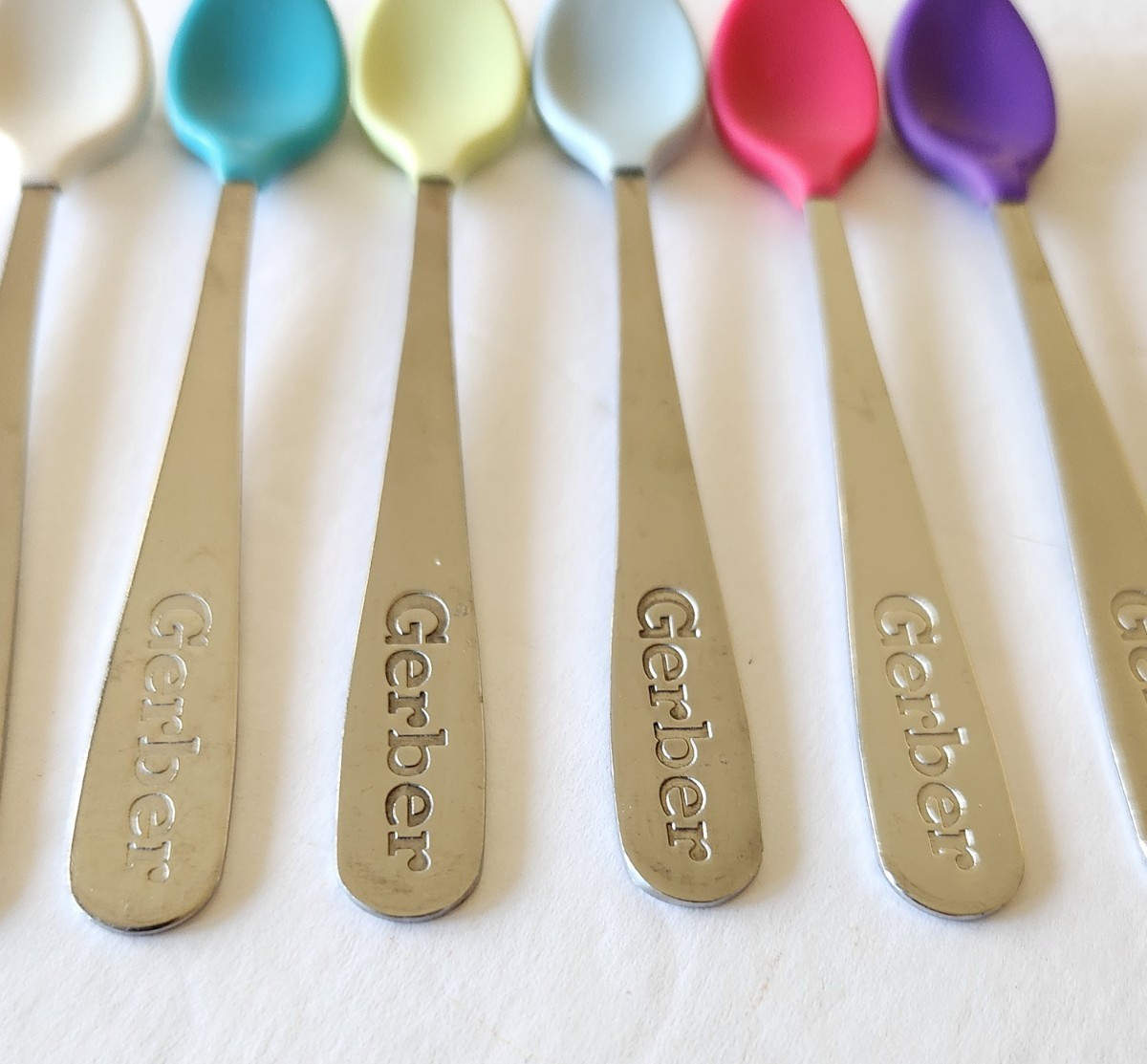 как выглядит GERBER Soft Bite Tip Baby SPOON Stainless Steel Rubber SPOONS фото