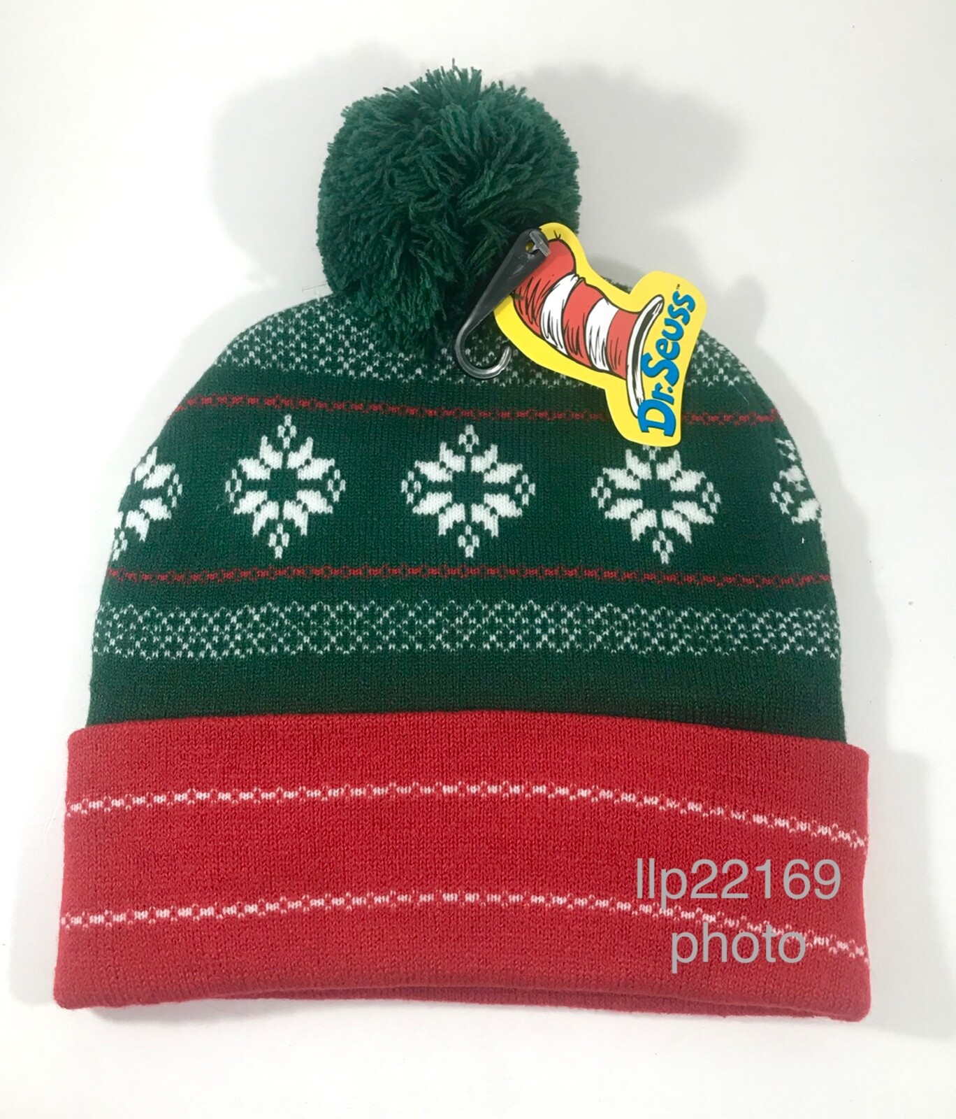 как выглядит Dr. Seuss THE GRINCH SNOWFLAKES Knit BEANIE WINTER HAT PomPom Bioworld New фото