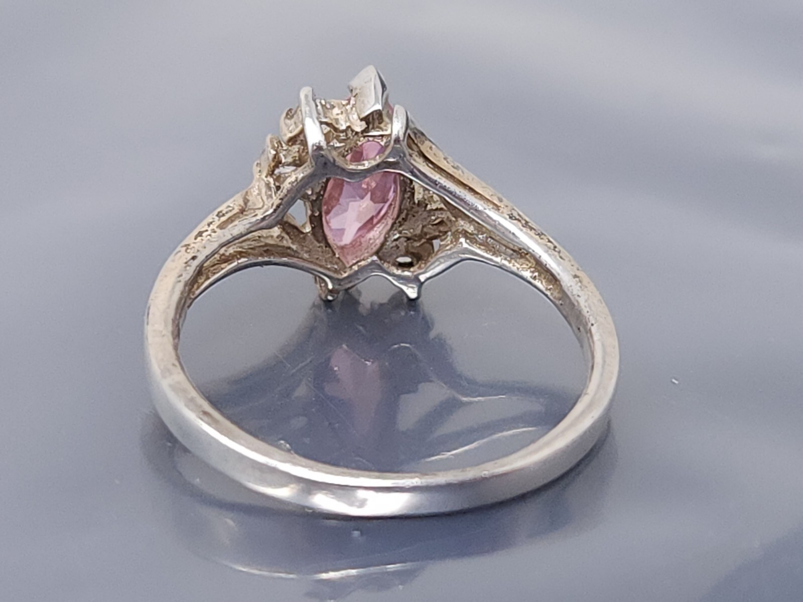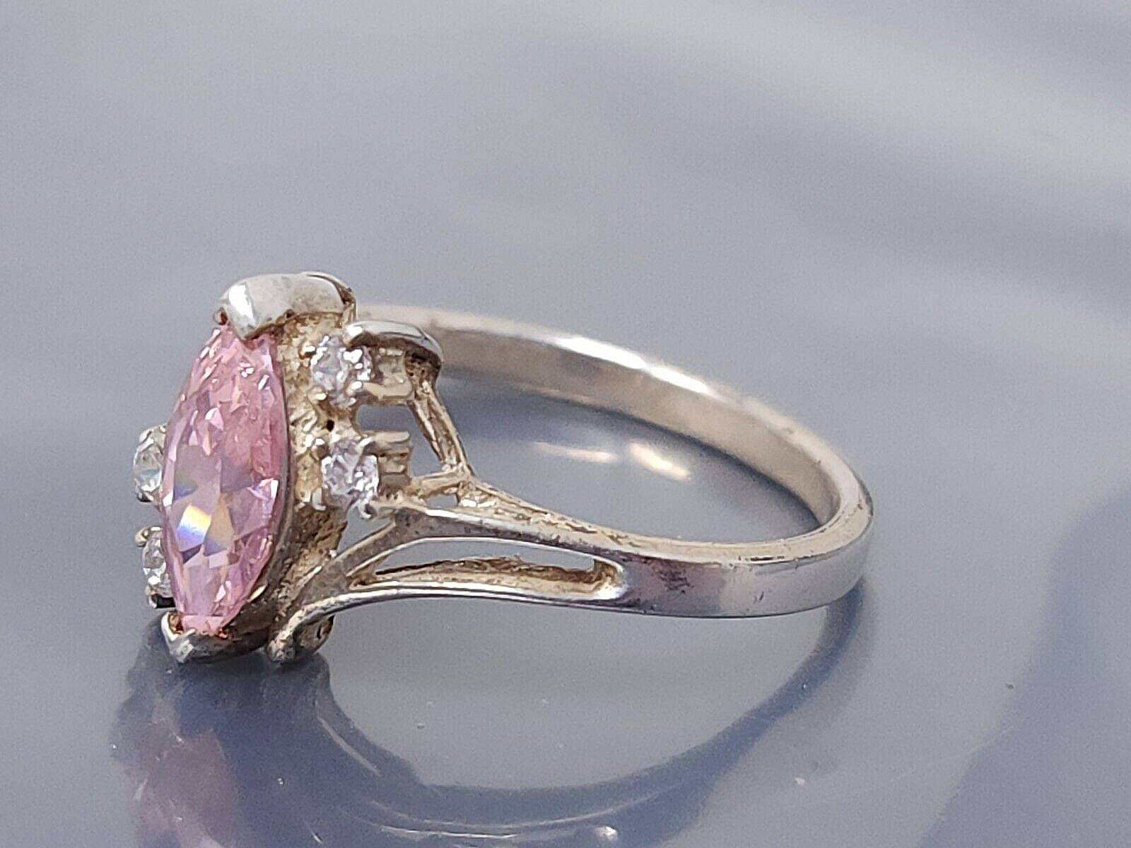 как выглядит Vintage Sterling Silver Pink White Crystal band Ring size 8 фото
