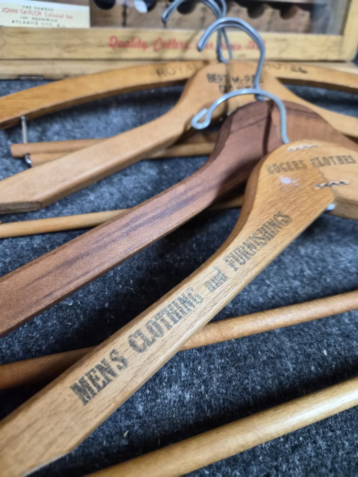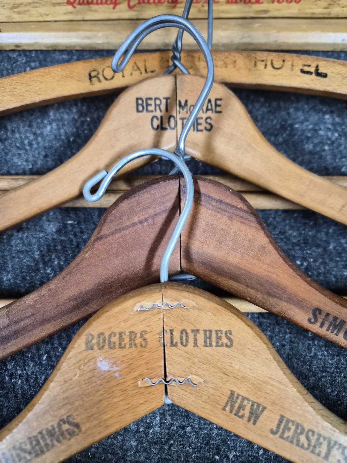 Clothing Advertising Vintage Wooden Hangers Lot Of 4 Different Logos