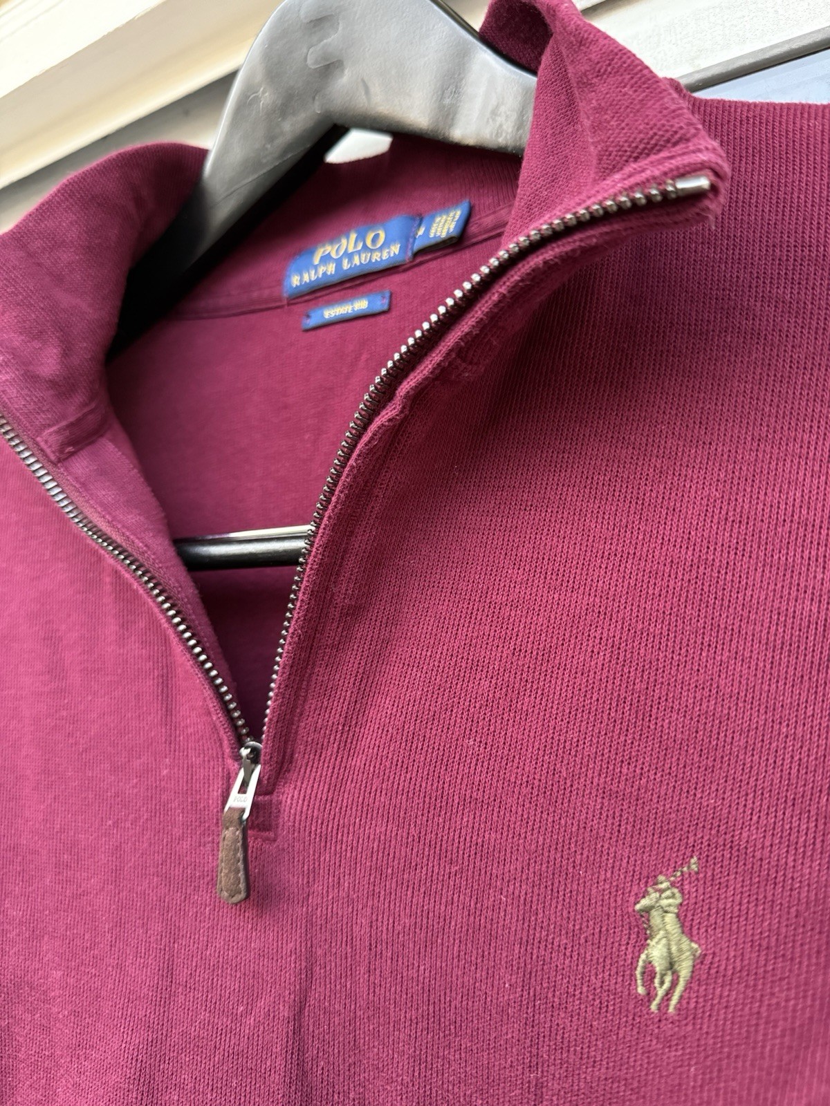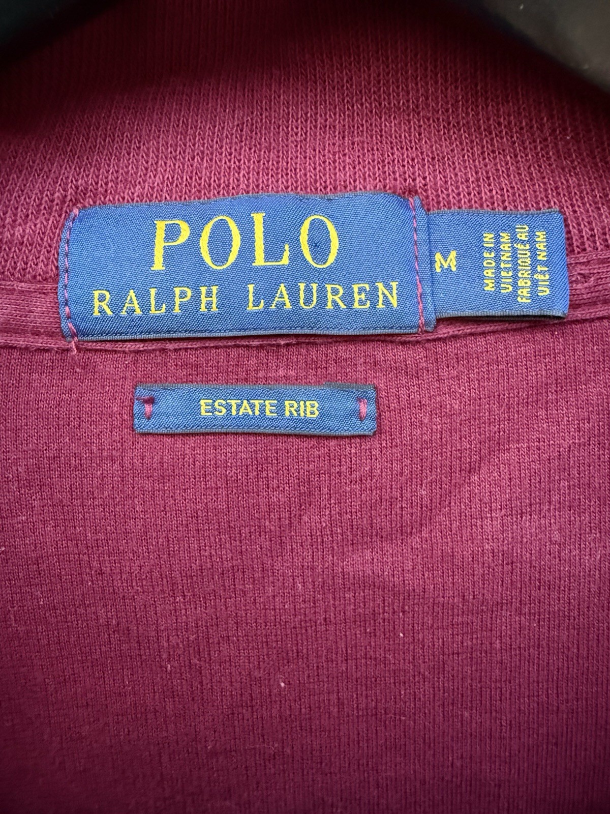 Polo Ralph Lauren Men's M Red Cotton Estate Rib 1/4 Quarter Zip Pullover Sweater