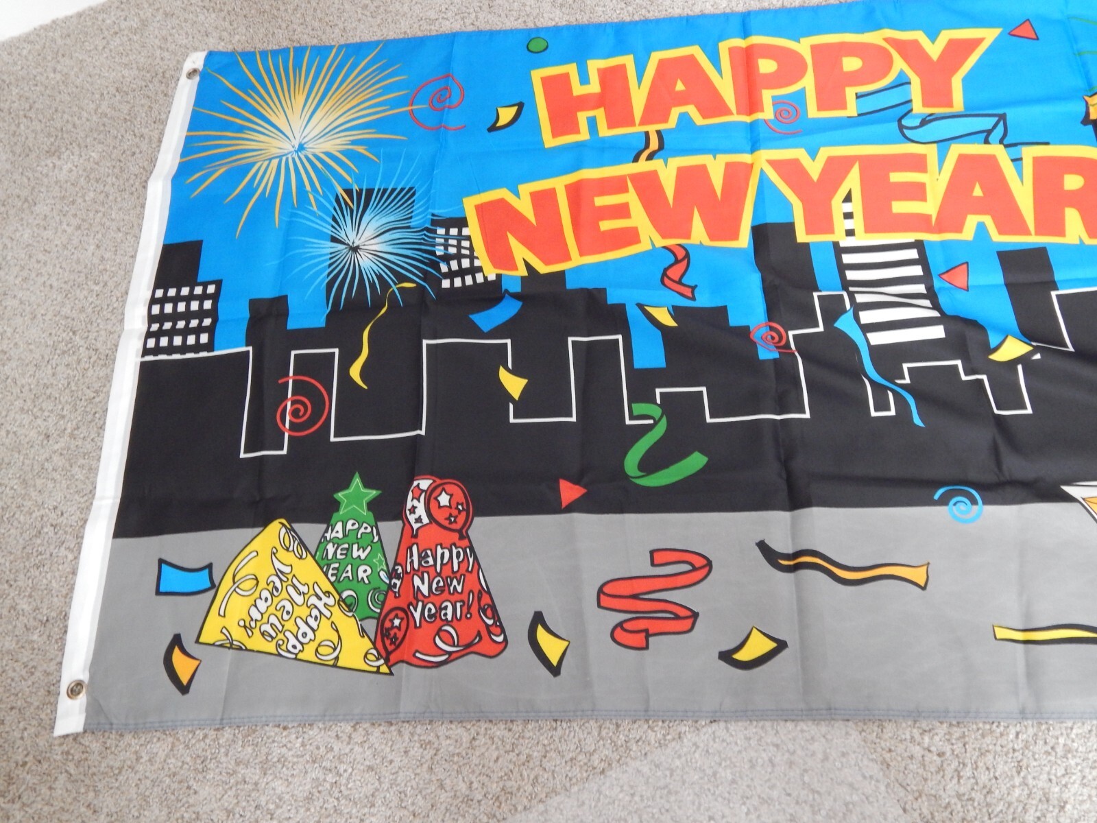 HAPPY NEW YEAR CITYSCAPE 3X5 FT SEASONAL DECOR FLAG POLYESTER HOUSE OUTDOOR