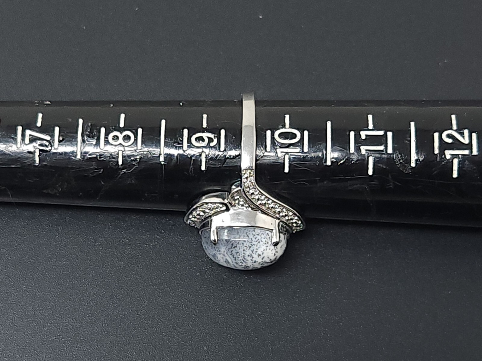 как выглядит Vintage Sterling Silver 925 Grey Agate Oval band Ring size 9 фото