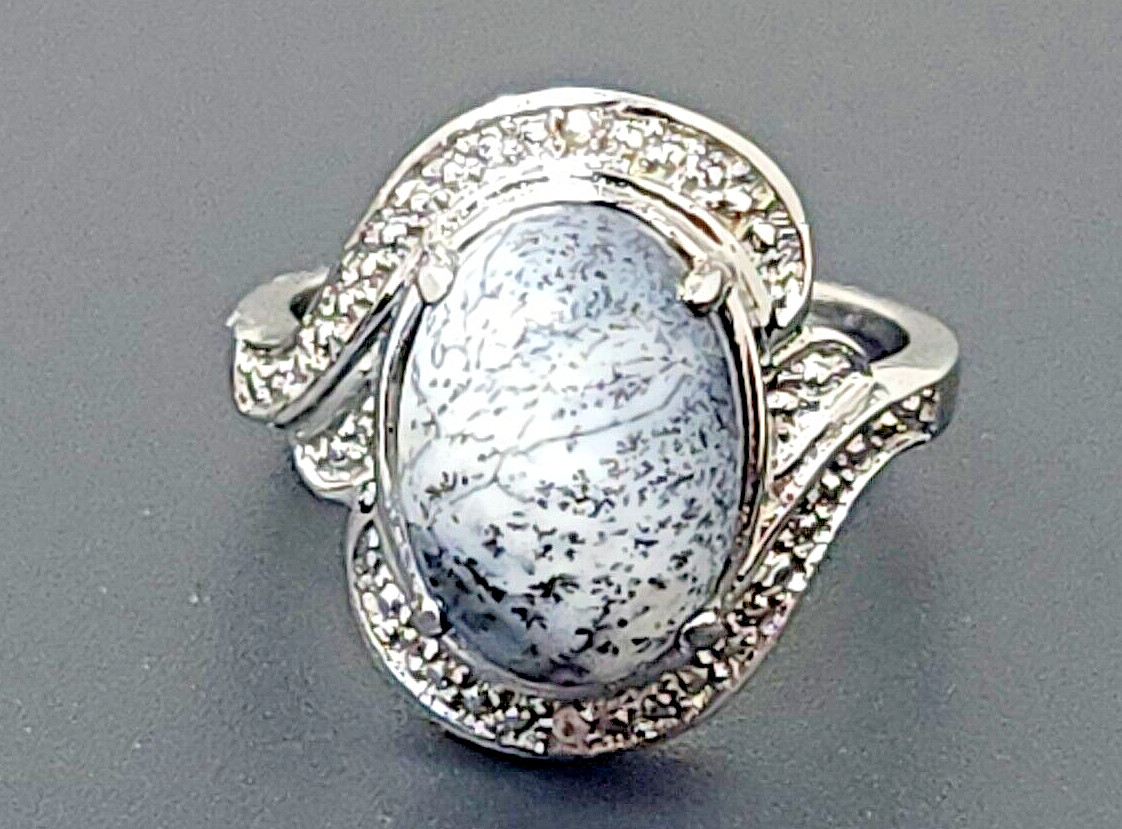 Vintage Sterling Silver 925 Grey Agate Oval band Ring size 9