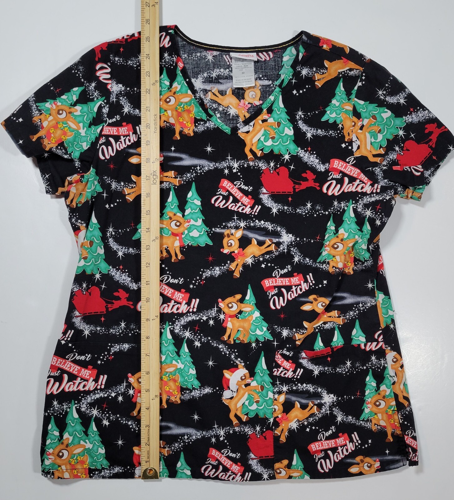 Rudolph the Red Nosed Reindeer Scrub Womans M Don t Believe Me Just Watch