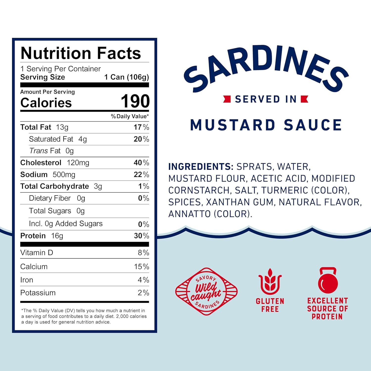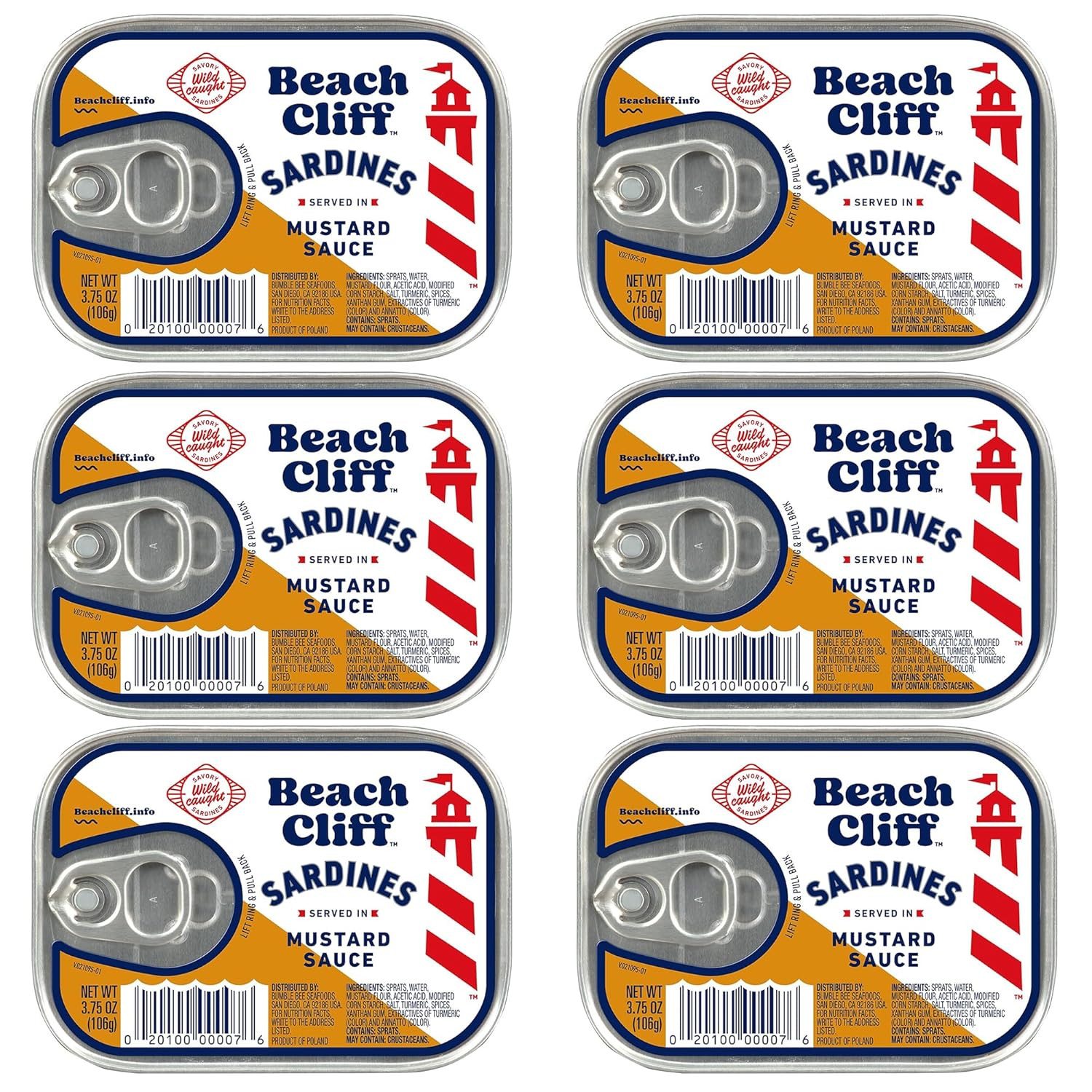Beach Cliff Wild Caught Sardines in Mustard Sauce 3.75oz Gluten Free, Keto 6