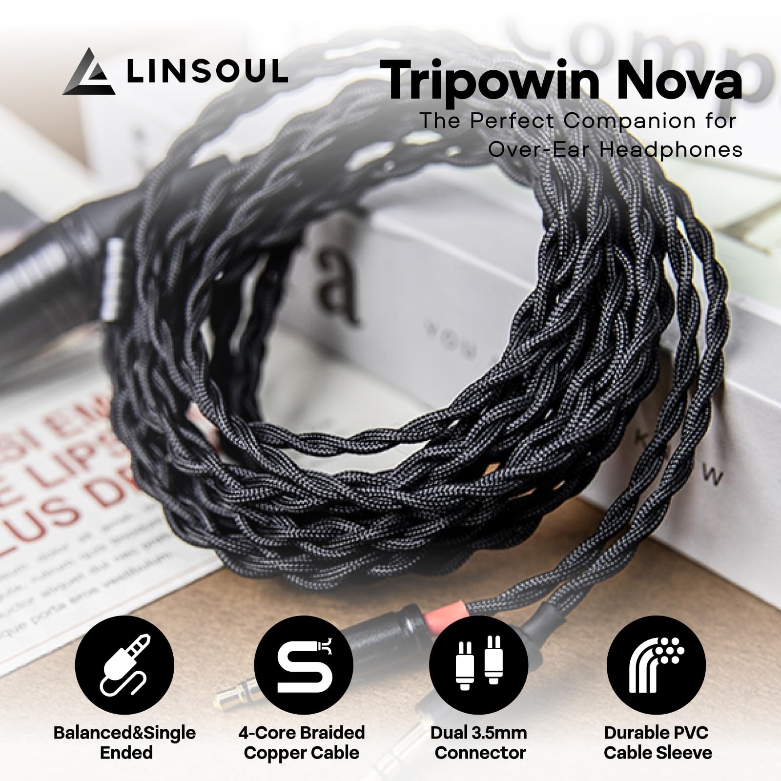 Tripowin Nova Monitor Headphone Cable, Over-Ear 2 meters, Black