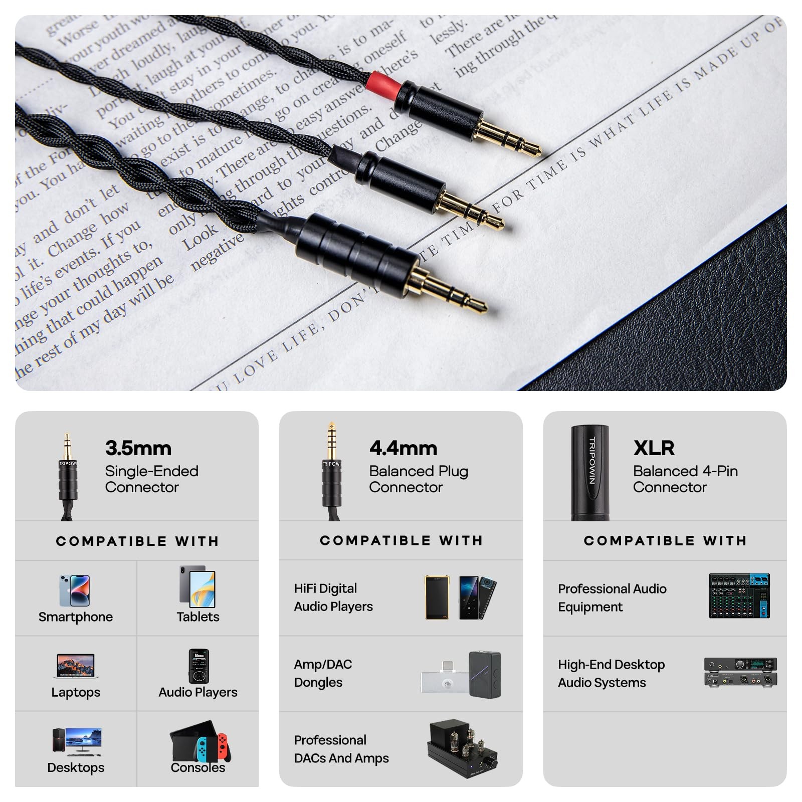 как выглядит Tripowin Nova Monitor Headphone Cable, Over-Ear 2 meters, Black фото