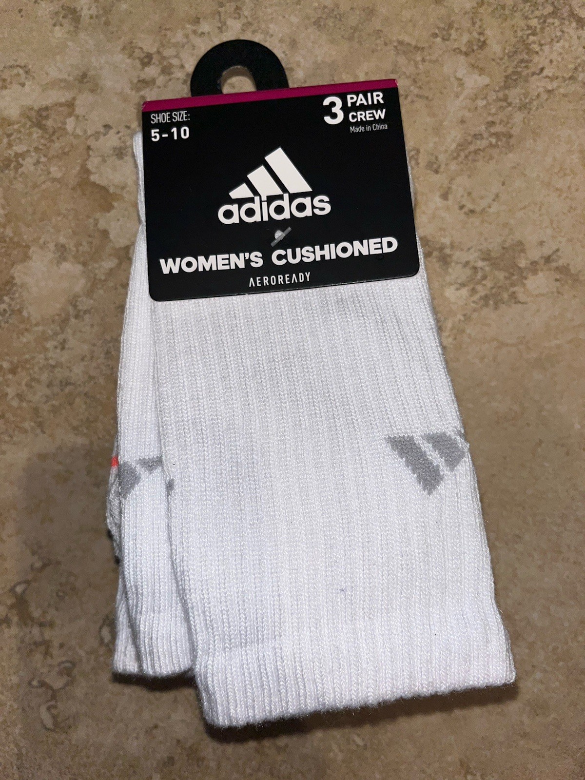 New Adidas Womens White Aeroready Cushioned Crew Socks 3 Pack Size 5-10