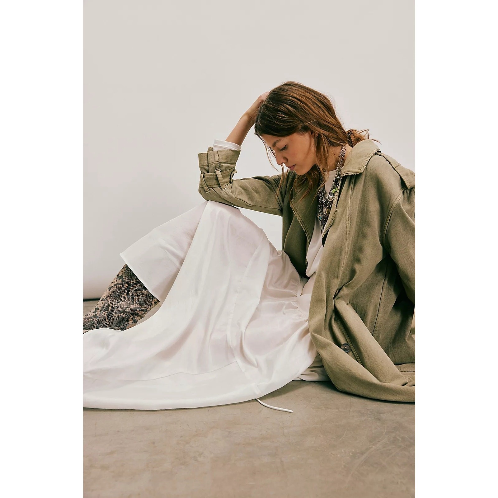 New FREE PEOPLE Emery Drop-Waist Midi Skirt 128 MEDIUM White Elastic