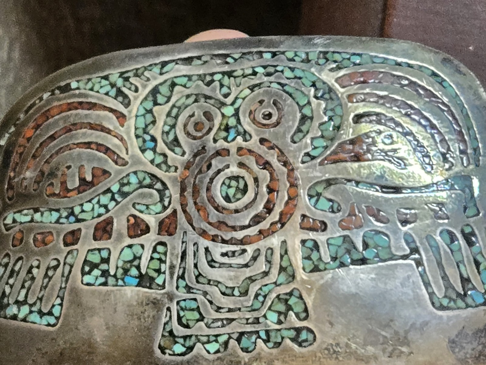 как выглядит Vintage Taxco Turquoise/Coral sterling Belt Buckle фото