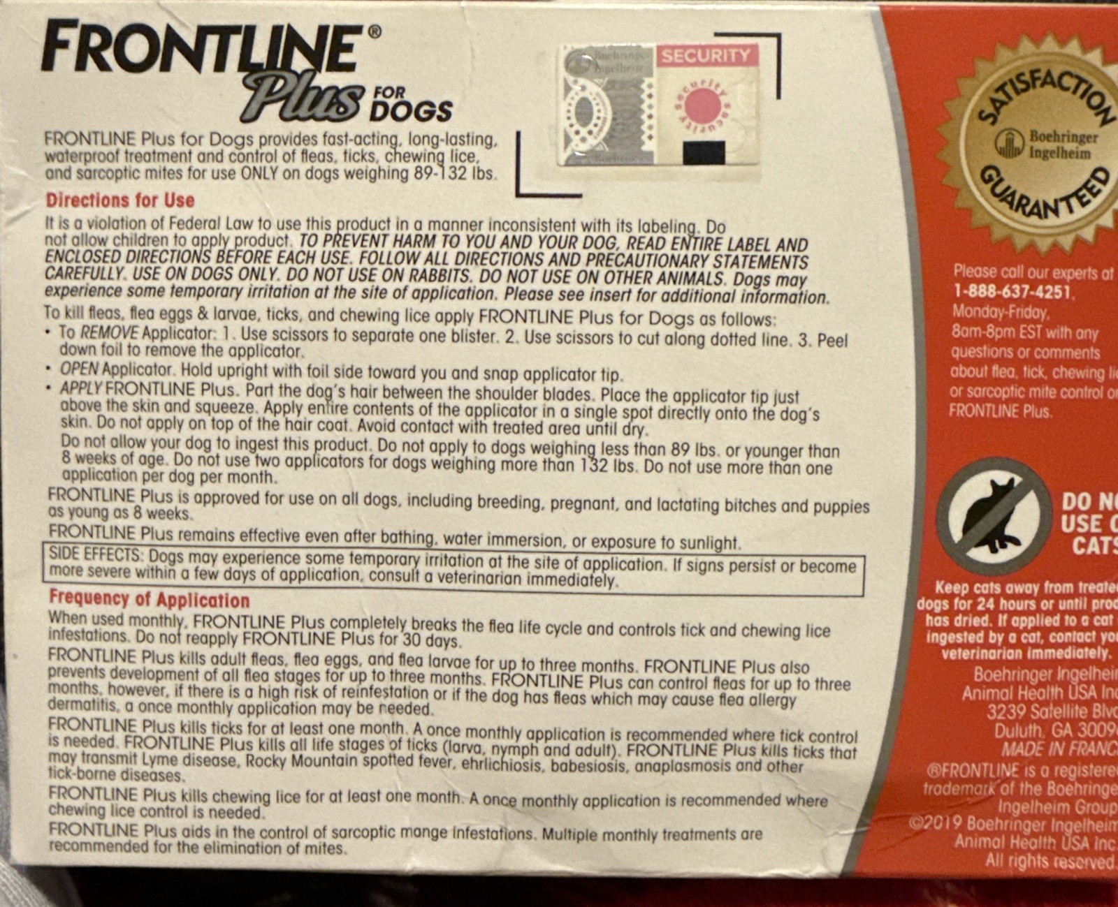 Frontline Plus for Dogs 89-132 lbs 3pk 100 Genuine U.S EPA Approve