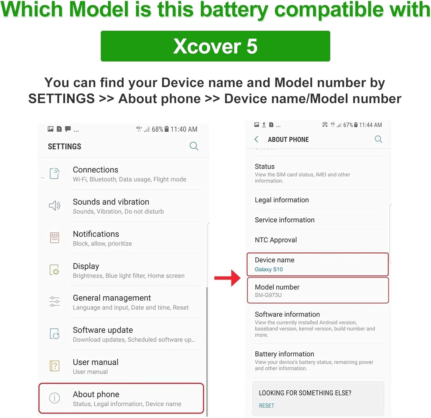 EB BG525BBE 3.85V 3000mAh Battery Compatible with Samsung Galaxy Xcover 5 Comes