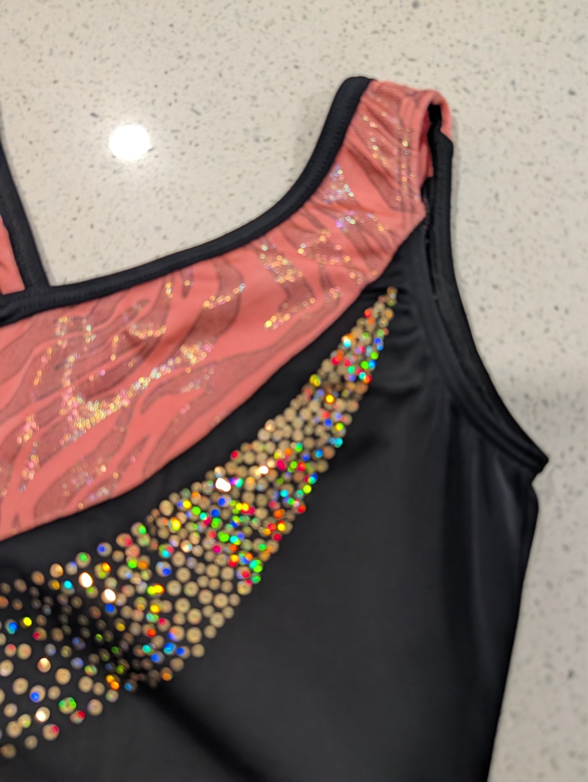 BEAUTIFUL GK Elite AXS Extra Small Gymnastics Dance Leotard Coral Orange SEQUINS
