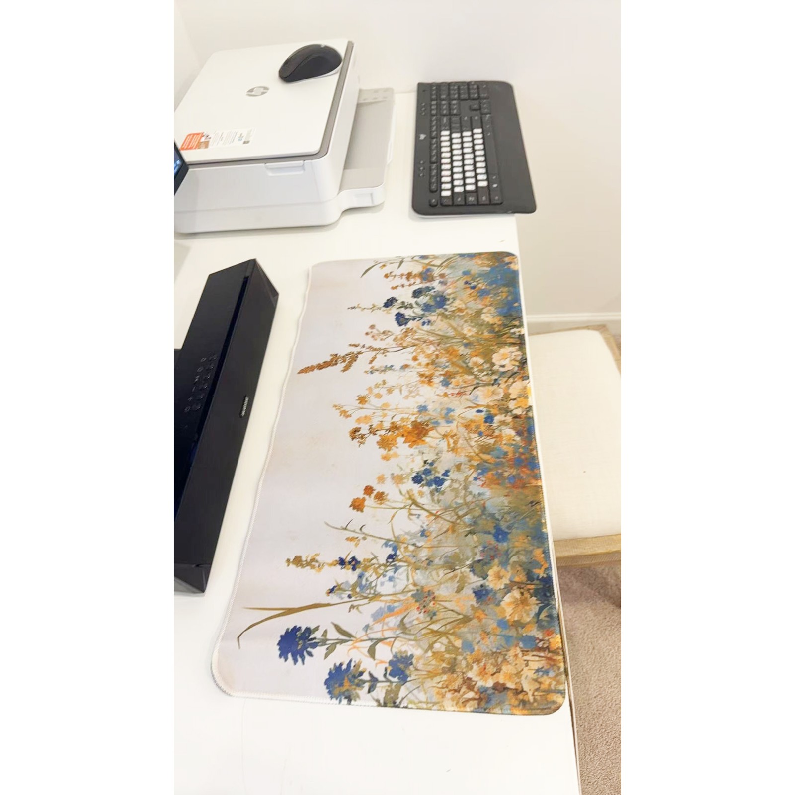 как выглядит Soft Blue Yellow Floral Oversized Mouse Pad 23.6" X 11.5" Keyboard Mat Non-Slip фото