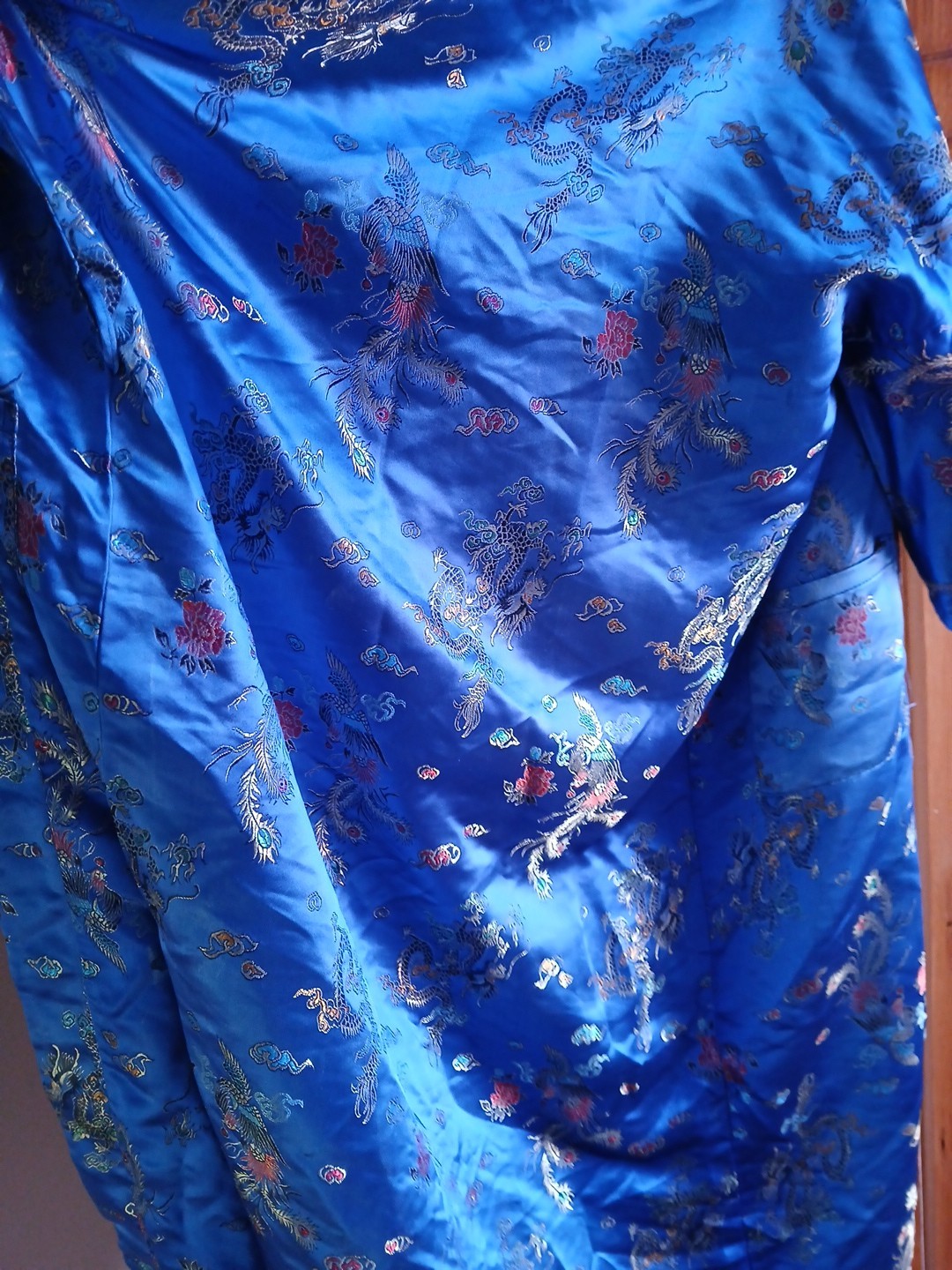 как выглядит Holden Dragon Silk Satin Kimono Robe Sleepwear Long w/ Waist Tie Vintage фото