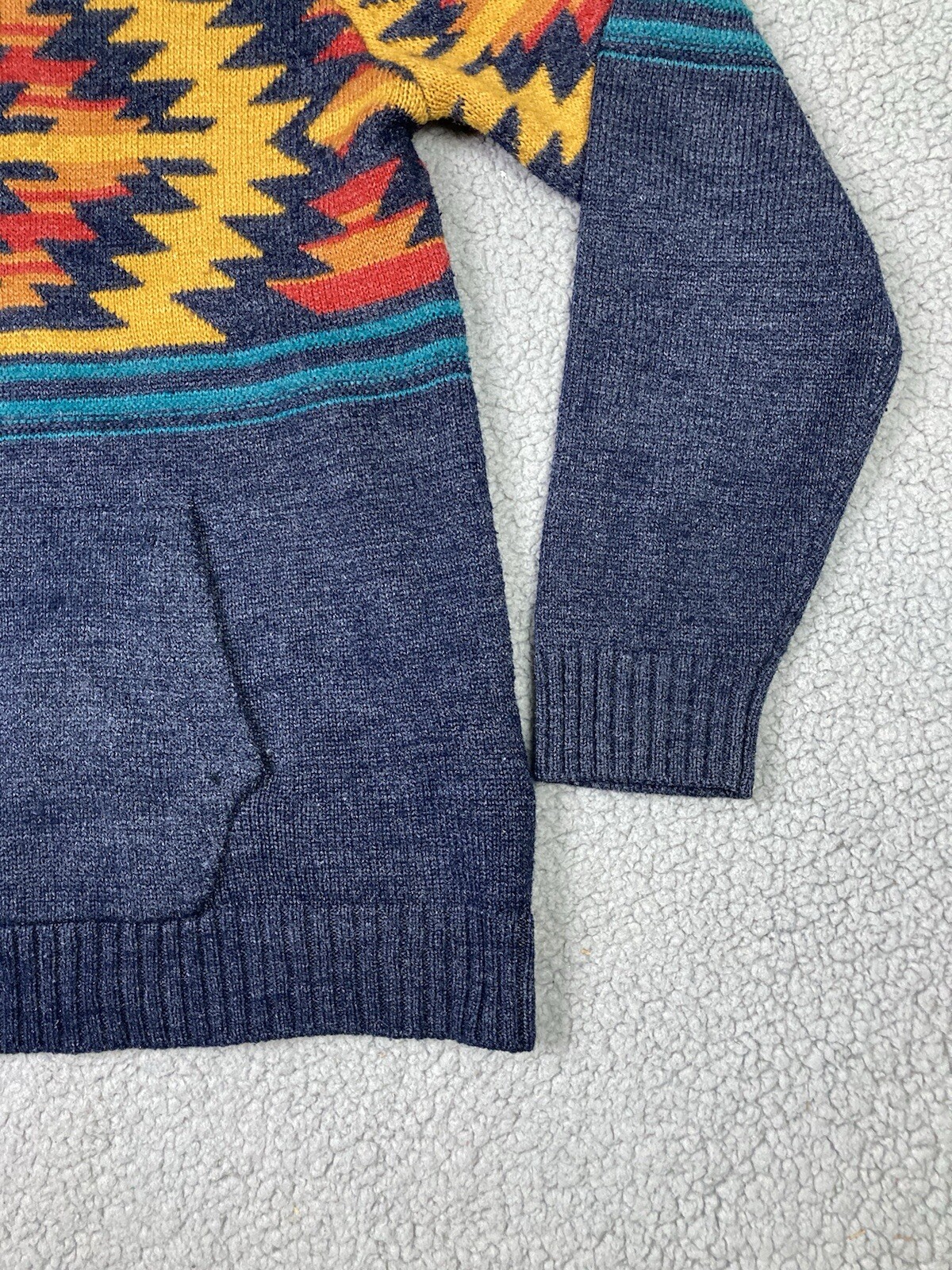 как выглядит Xray Jeans Sweater Mens LG Blue Aztec Hooded Kangaroo Pocket Stretch Southwest фото