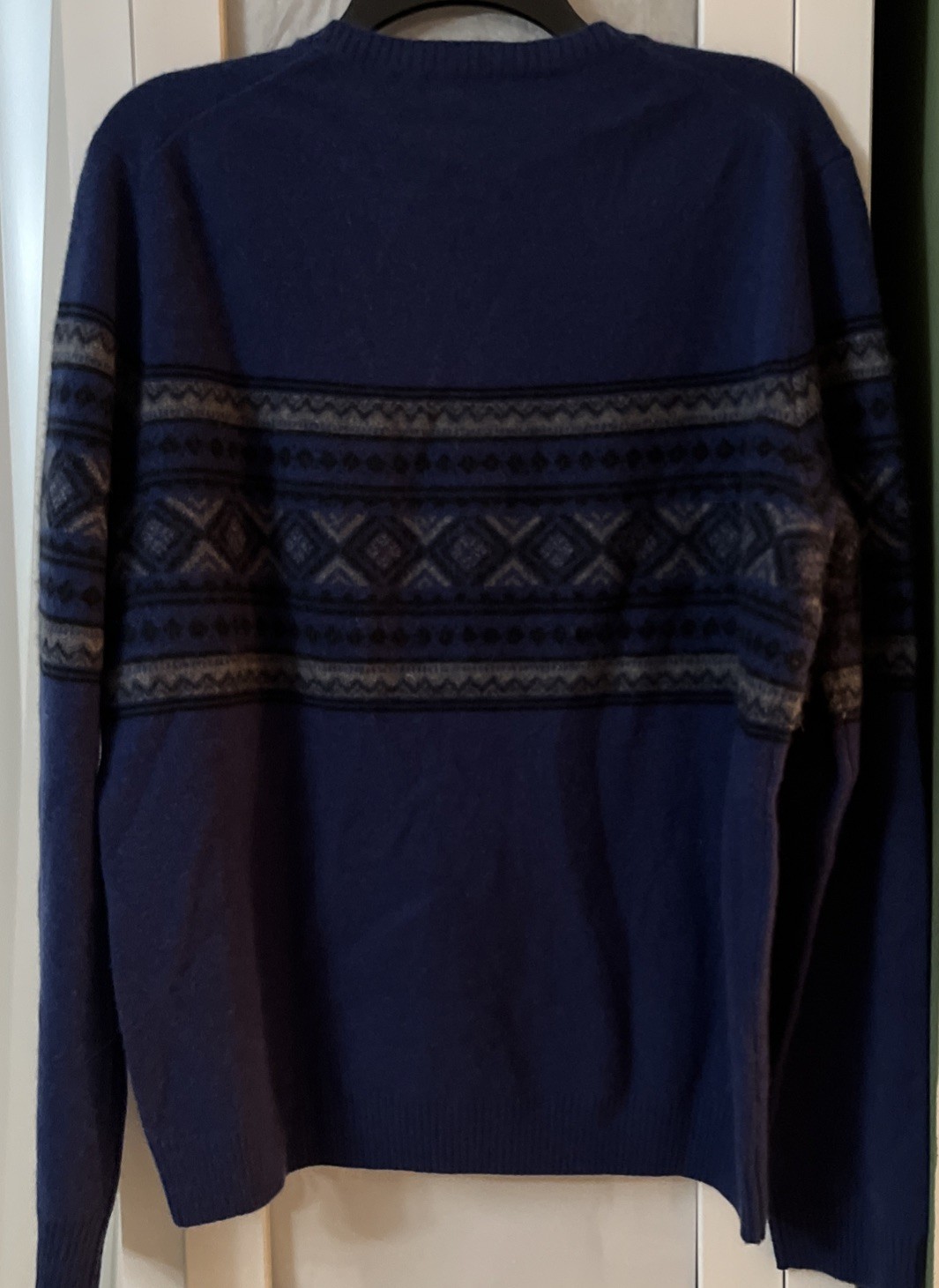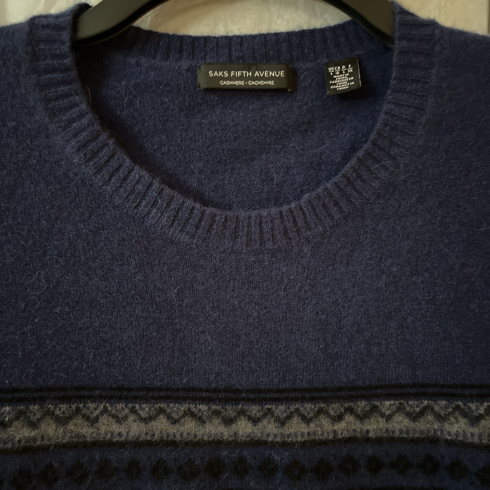 Saks Fifth Avenue Men s Size L Cashmere Blue/Black Pullover Fair Isle Sweater