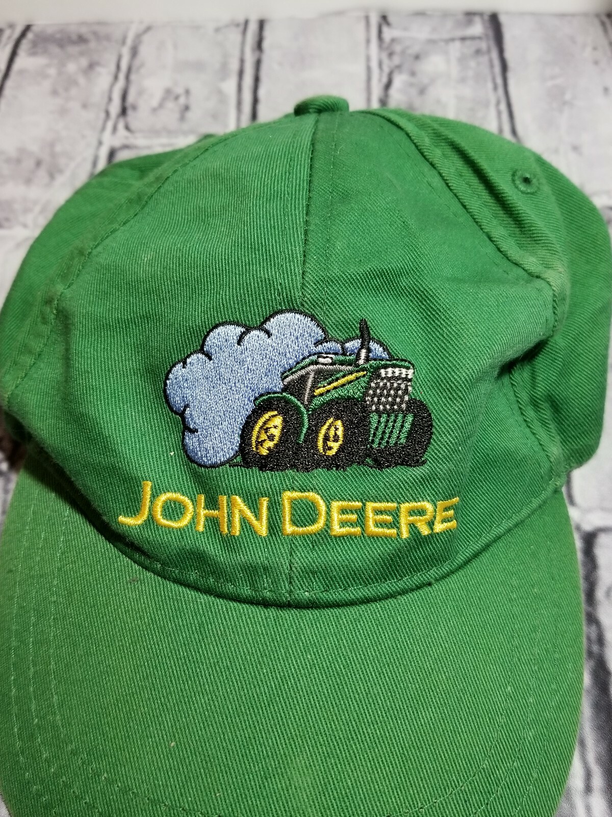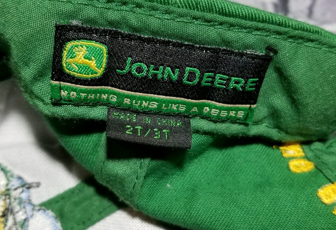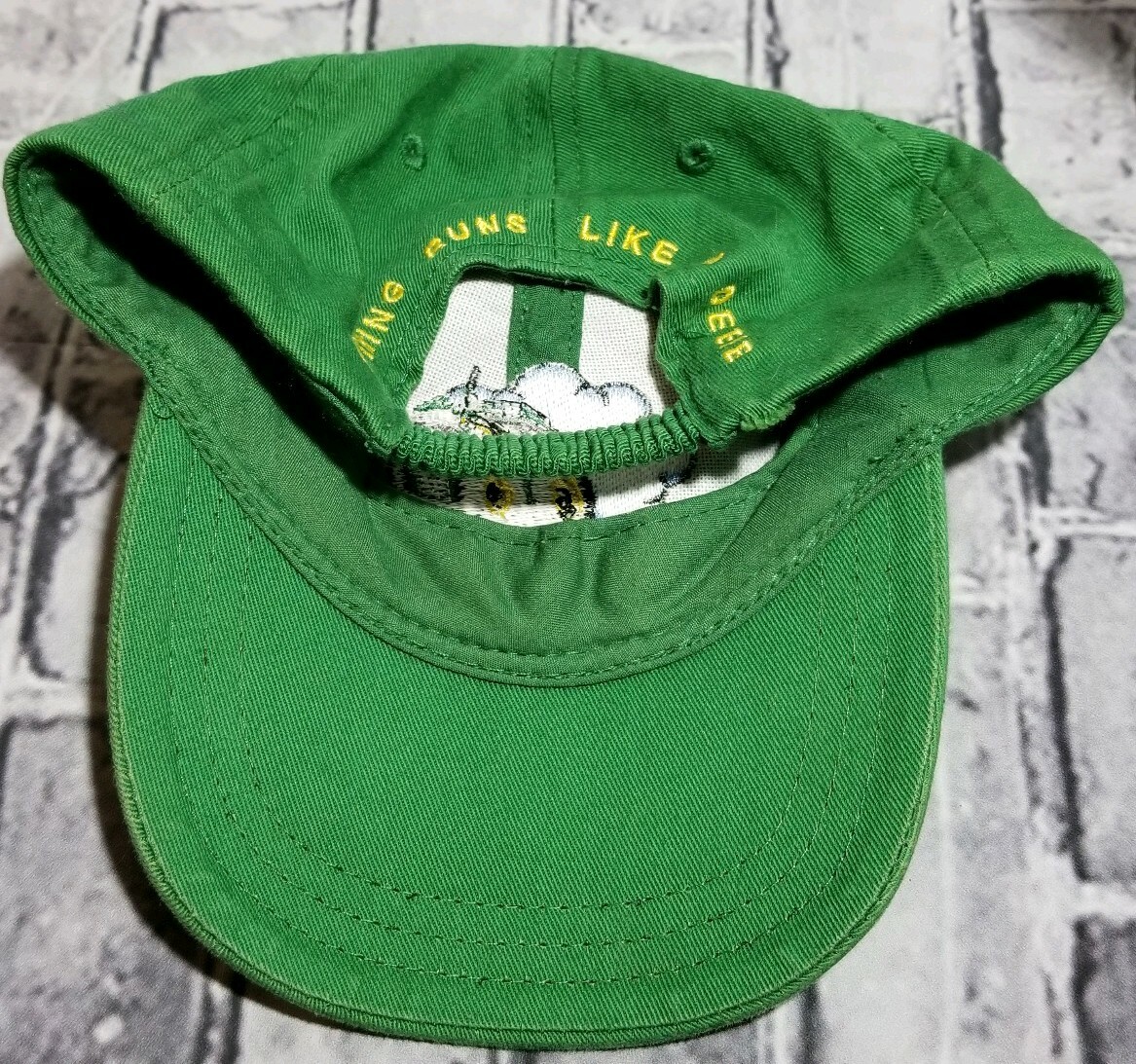Youth 2T/3T John Deere Ball Cap Elastic Back Green with Yellow Stitching