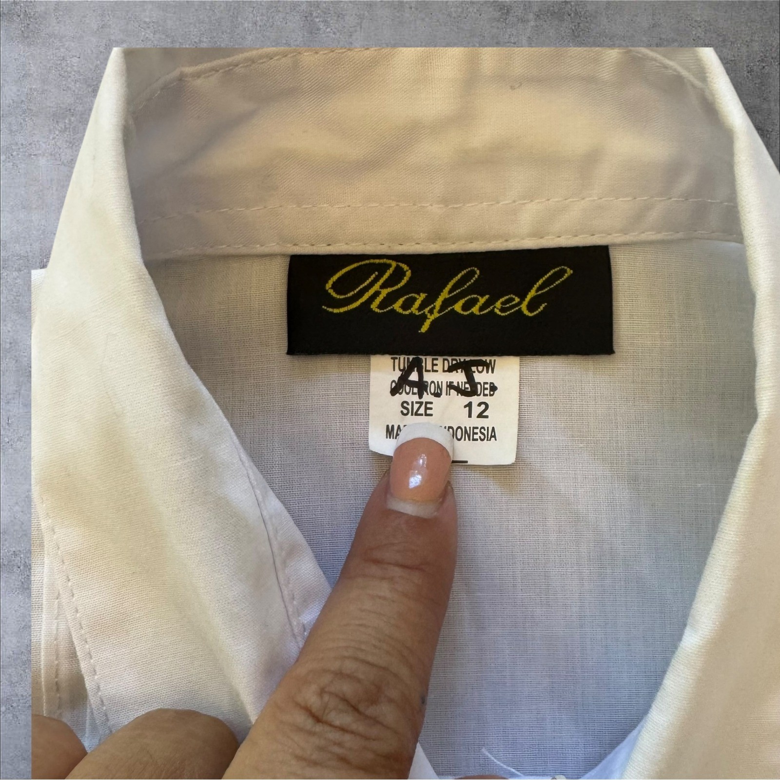 Rafael White Pleated Tuxedo Dress Shirt Long Sleeve Boys Size 12 Formal