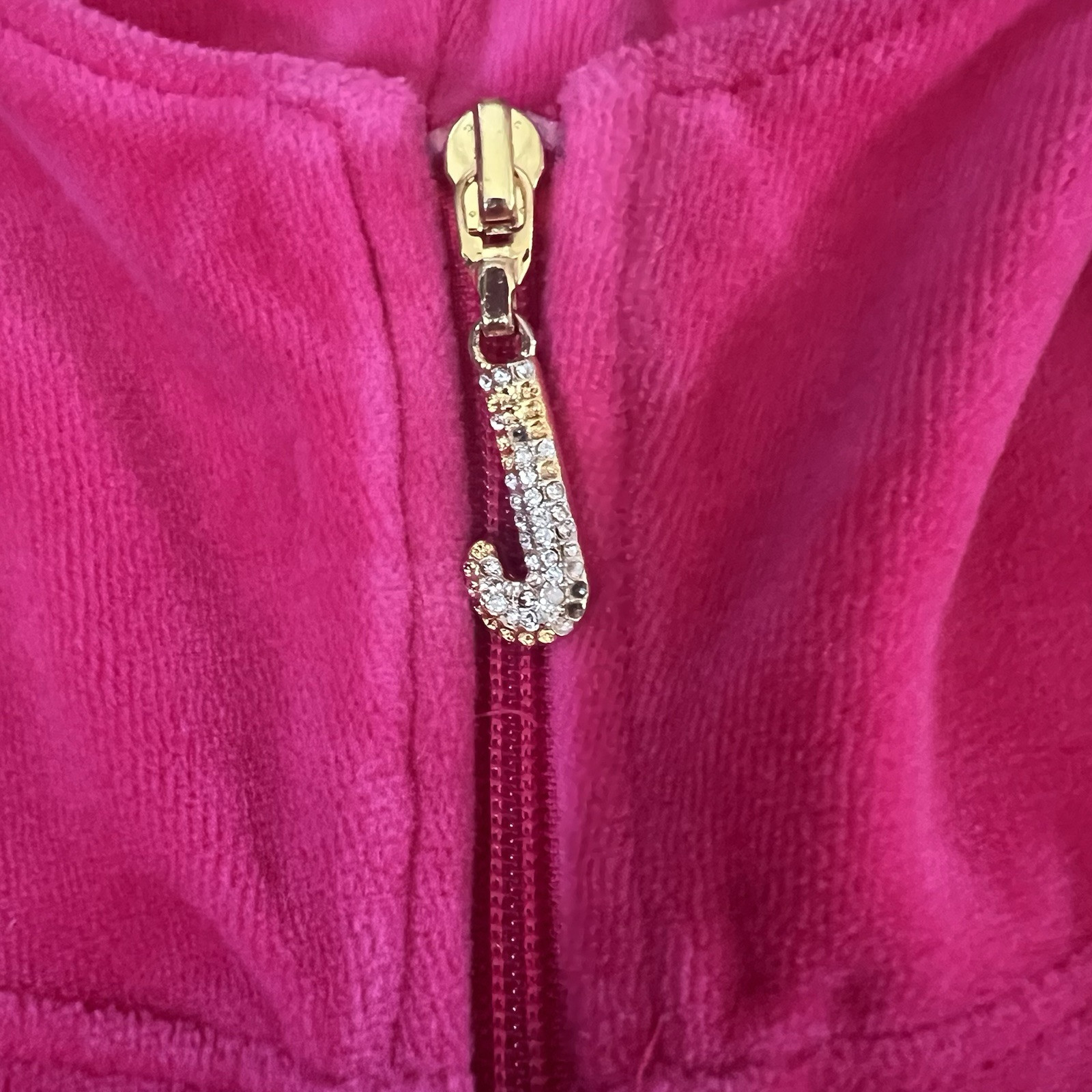 как выглядит Juicy Couture Y2K VTG Style Top Pant Hot Pink Small Velour Tracksuit Bling Logo фото