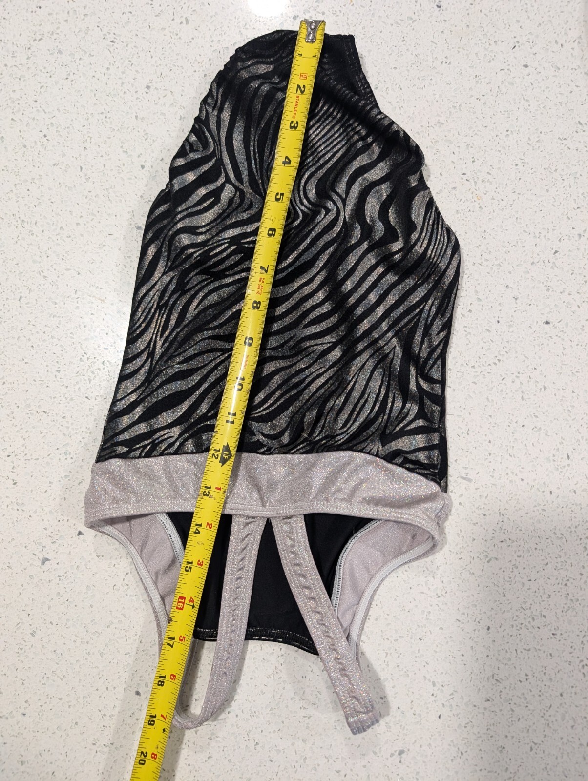 как выглядит GK ELITE Gymnastics Dance Leotard CS Child Small Metallic Silver Zebra Tiger фото