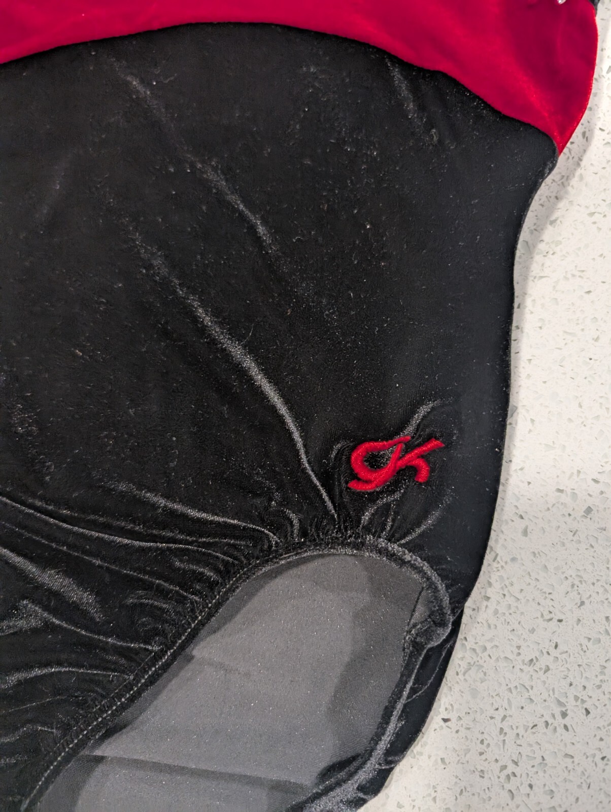 CHRISTMAS RED GK Elite Medium Gymnastics Dance Leotard ULTRA SOFT VELOUR Stones