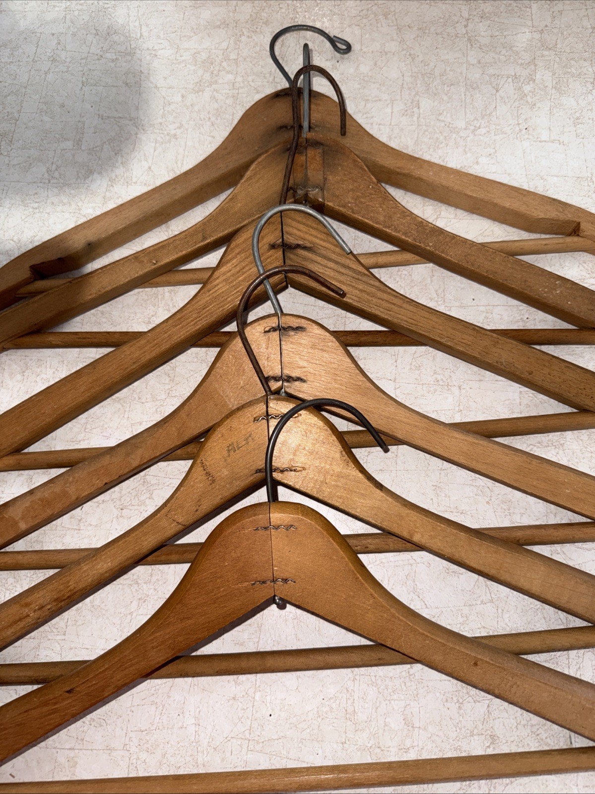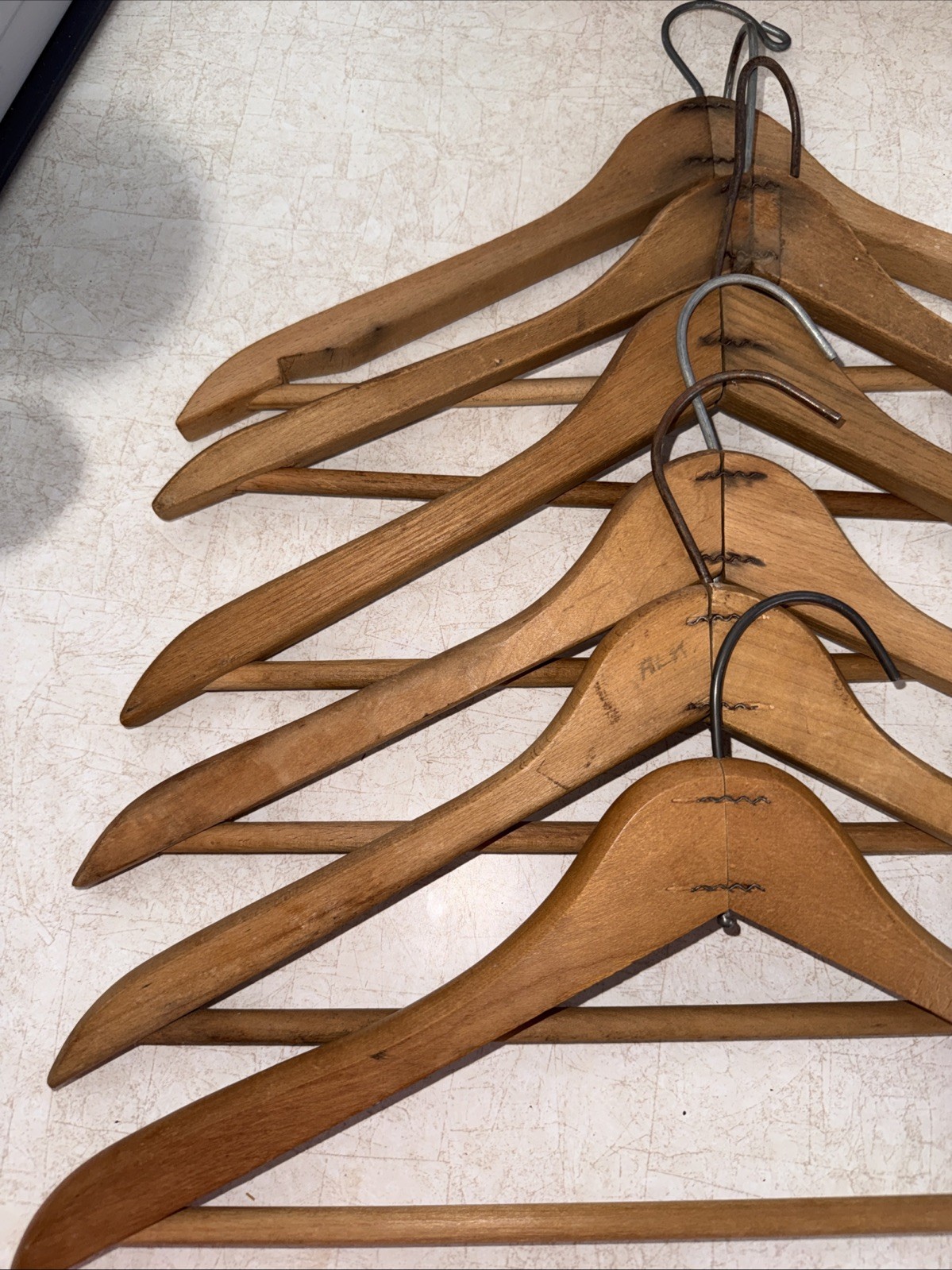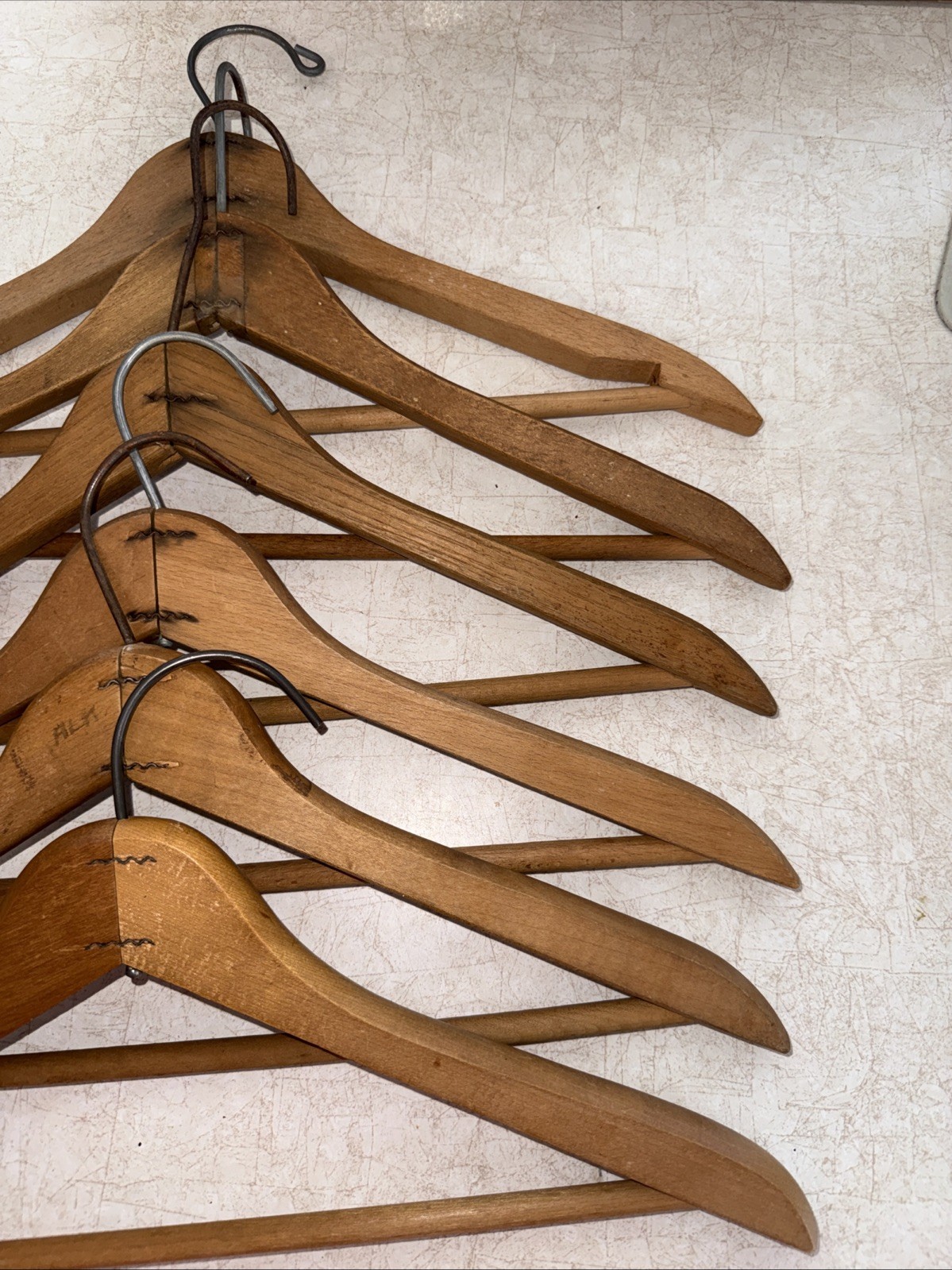 Vintage Wooden Hangers Set Of 6 Unbranded See Pictures