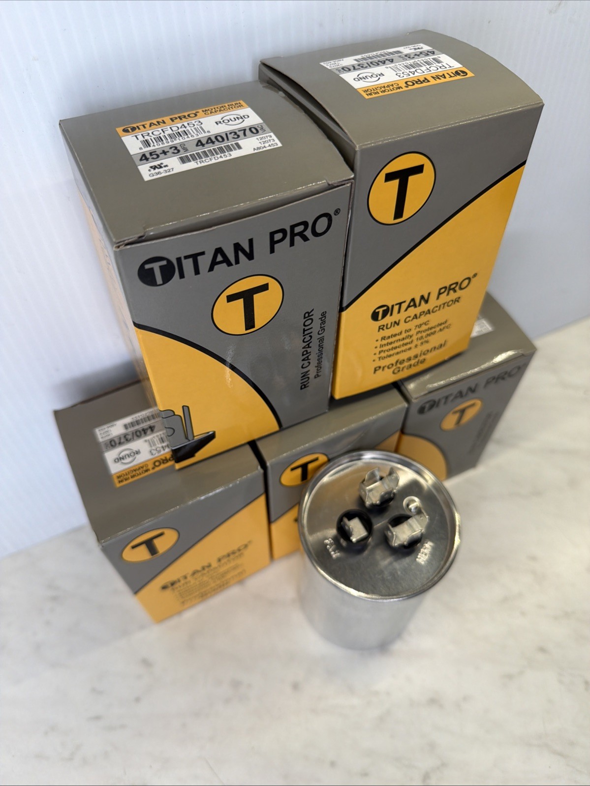 Lot 5 TitanPro TRCFD453 HVAC Round Dual Motor Run Capacitor 45/3 MFD/UF440/370V