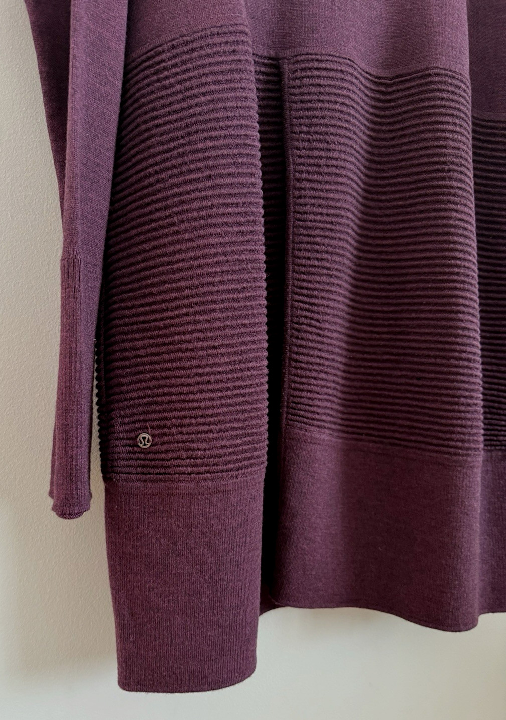 Lululemon Women's Sit In Lotus Wrap II Cardigan Sweater Heathered Plum Ribbed