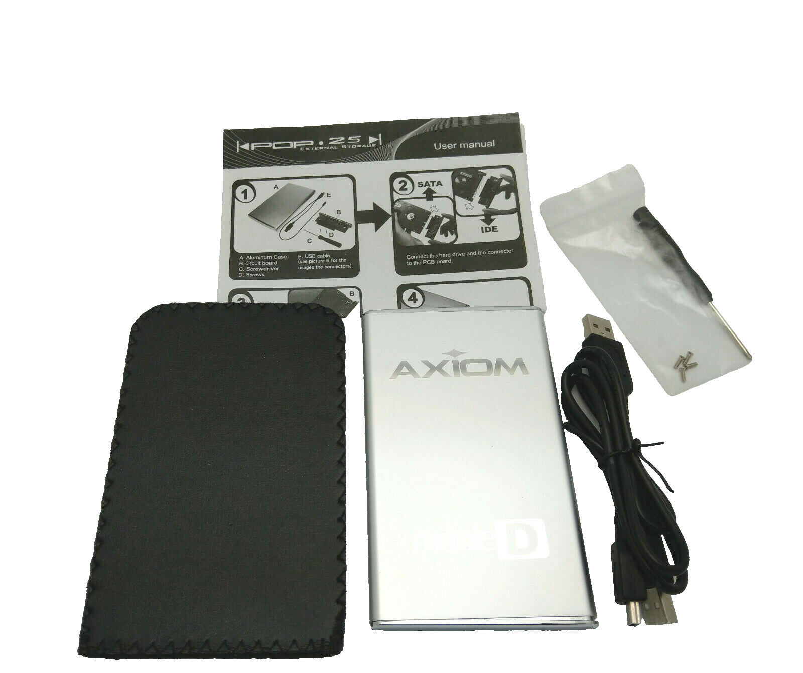 2pcs: Axiom Slim Aluminum External USB Hard Drive Enclosure fo 2.5 SATA HDD/SSD