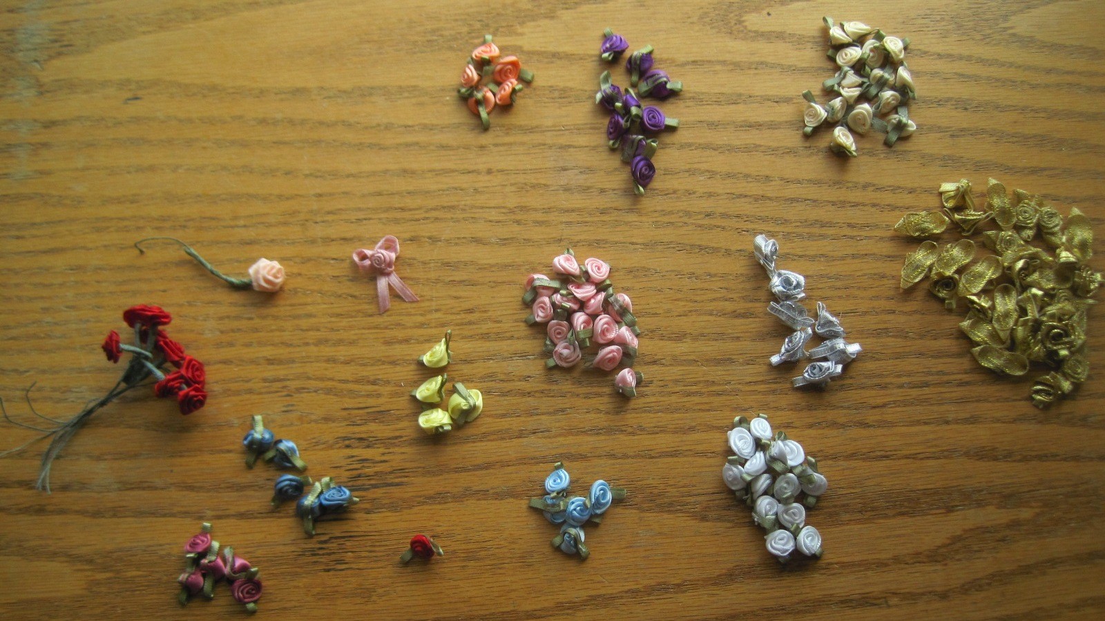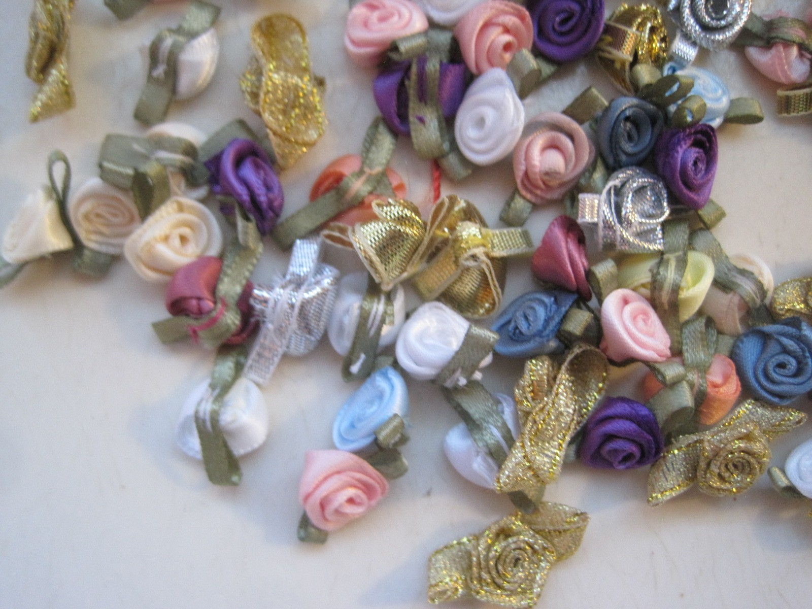 Lot of 120 Mini Flower Roses Many Silk Satin Type Floral Craft Wedding Shower