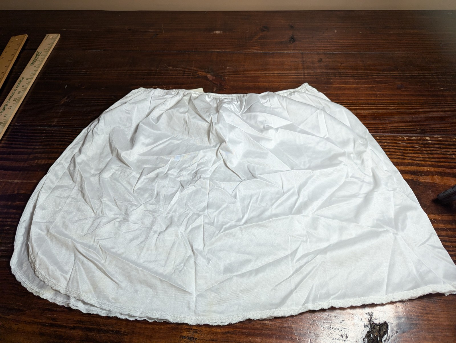 как выглядит VANITY FAIR Half Slip Skirt SILKY SATIN White Lace USA VINTAGE 2XL NWT Yellowing фото