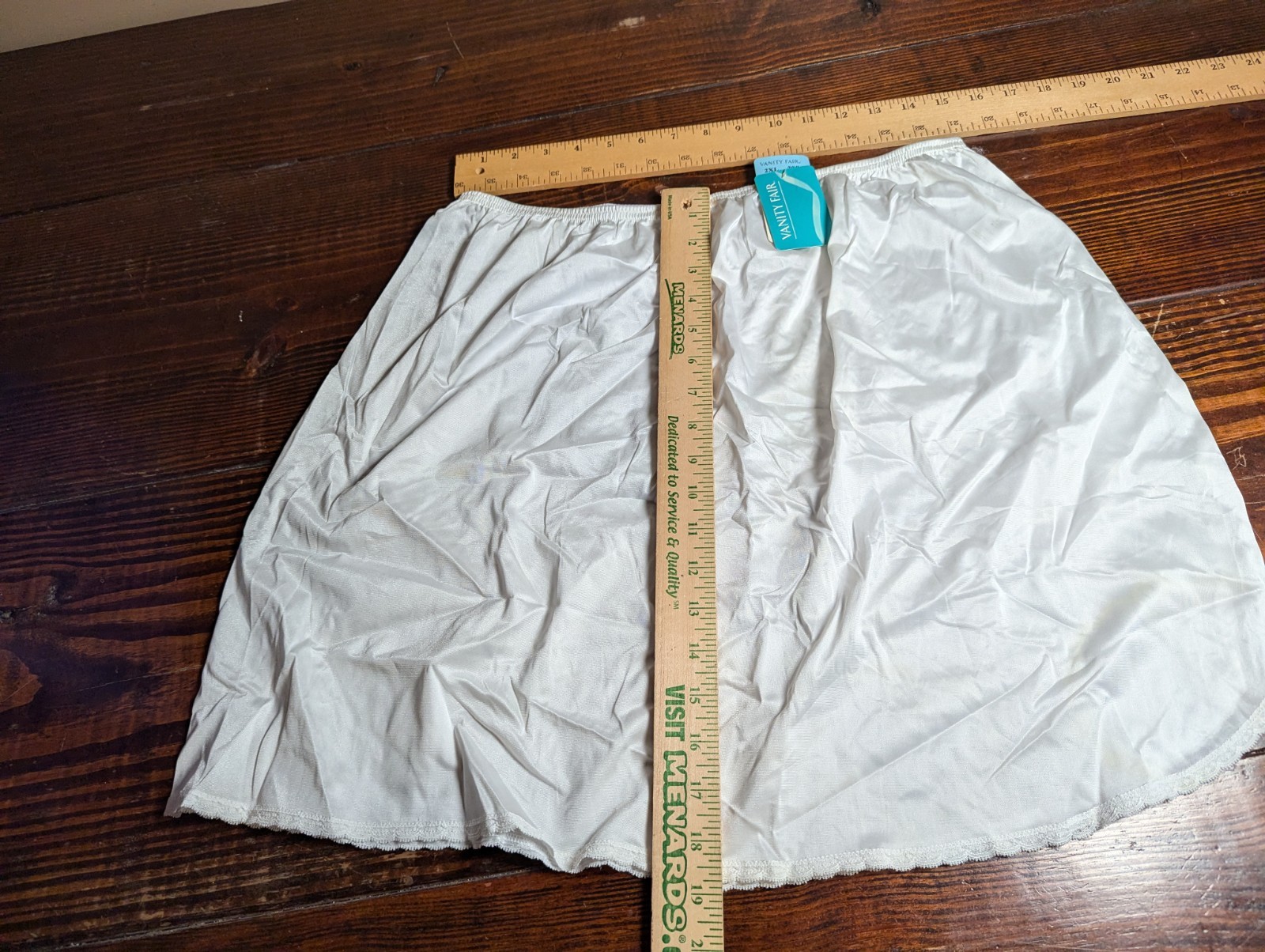 VANITY FAIR Half Slip Skirt SILKY SATIN White Lace USA VINTAGE 2XL NWT Yellowing