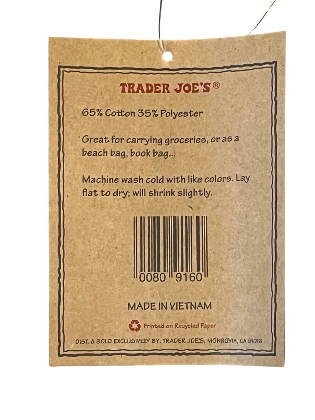 как выглядит TRADER JOES LARGE CANVAS BAG Heavy Cotton Reusable Tote - Navy Blue or Green фото