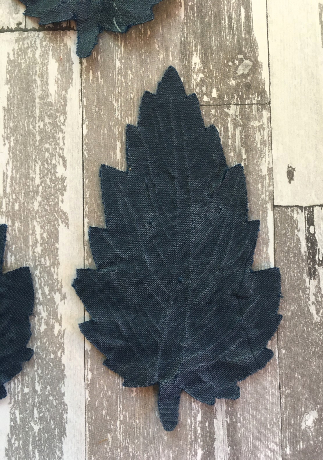 как выглядит Antique Vintage Millinery Velvet Leaves Textured Blue Color - Set of 5 фото