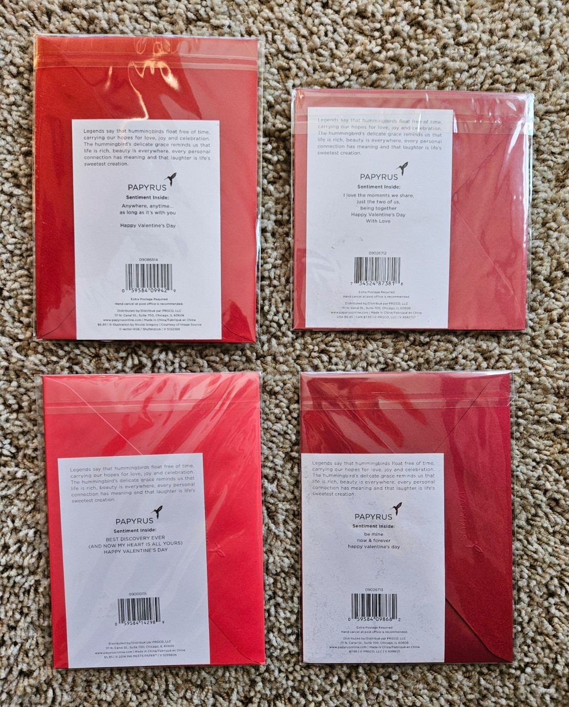 Lot of 4 Papyrus Valentine's Day Cards FREE SHIPPING