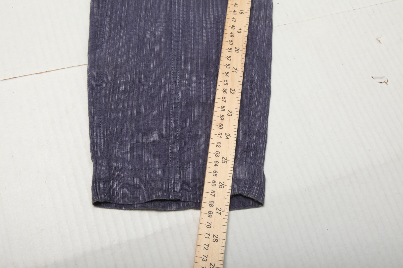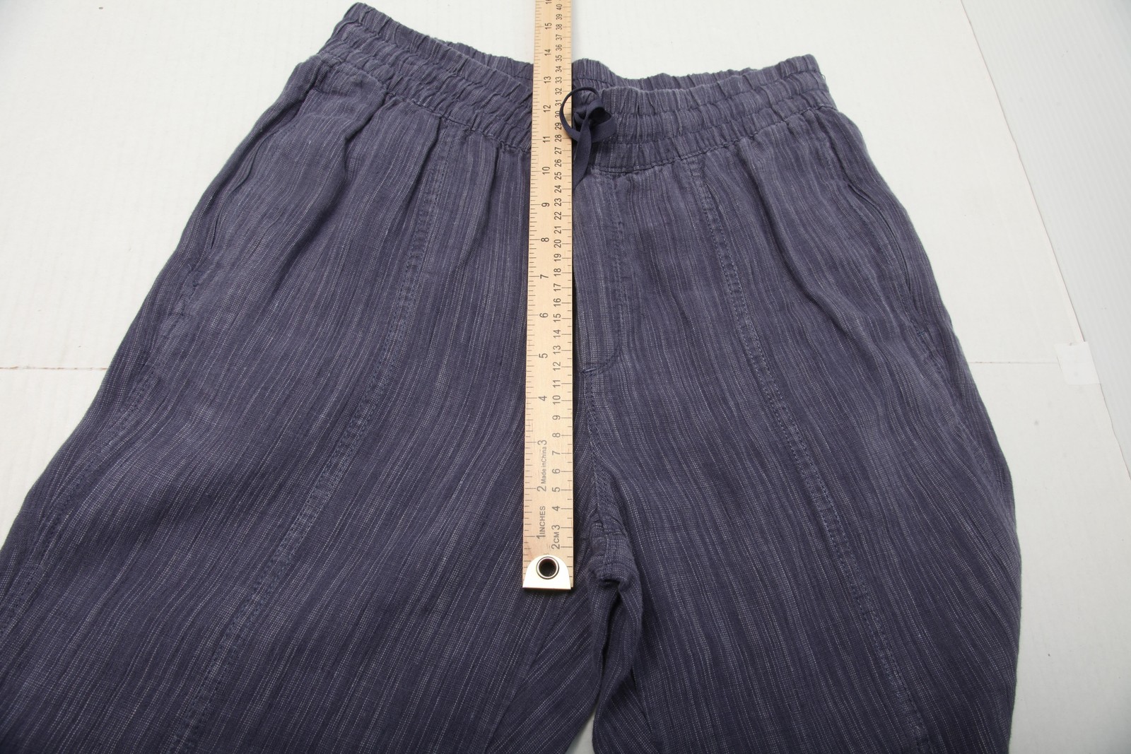 как выглядит Athleta Retreat Linen High Rise Ankle Pants Womens Small Blue Stripe Drawstring фото