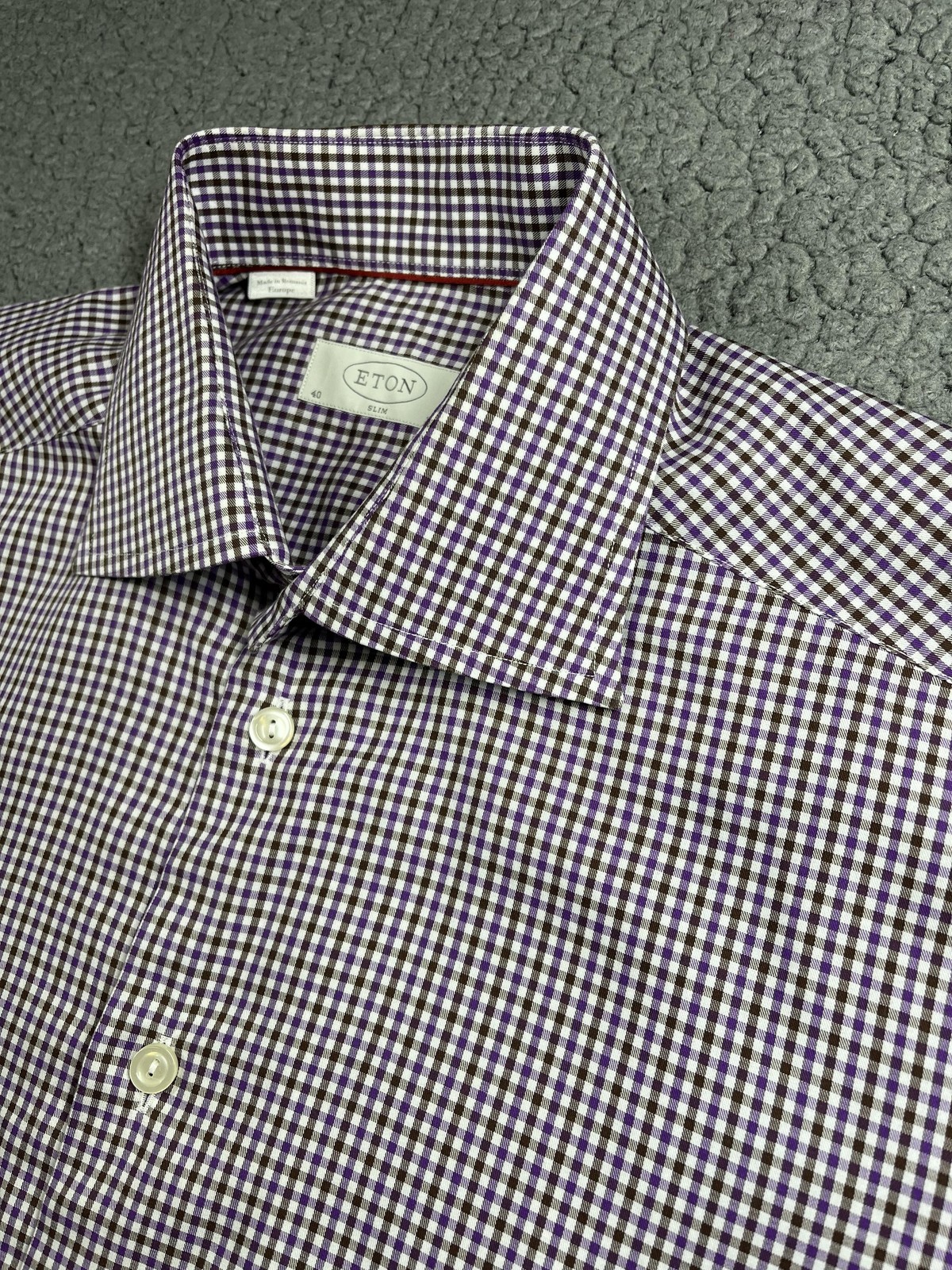 как выглядит Eton Shirt Mens 15.75 Purple Brown Check Slim Fit Dress Button Front Long Sleeve фото