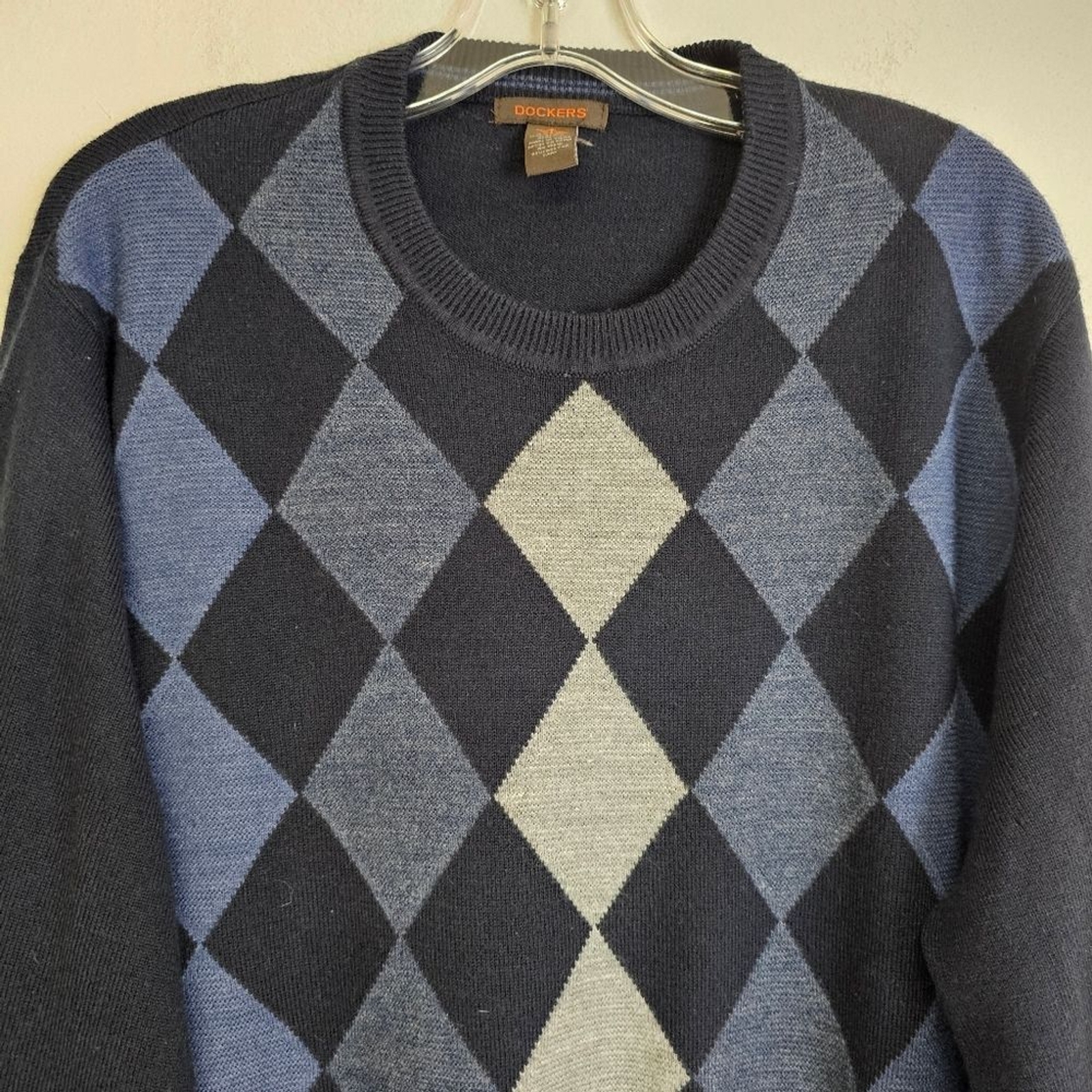 как выглядит Dockers Mens Sweater Marine Blue Argyle Crew Neck Sz XL Preppy Academia фото