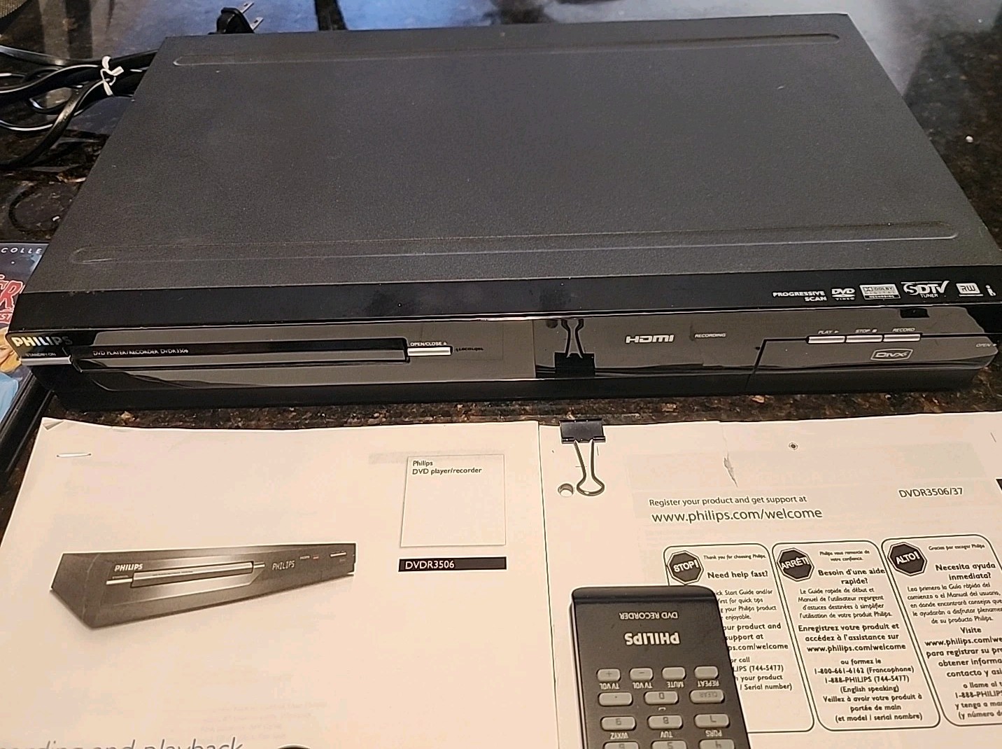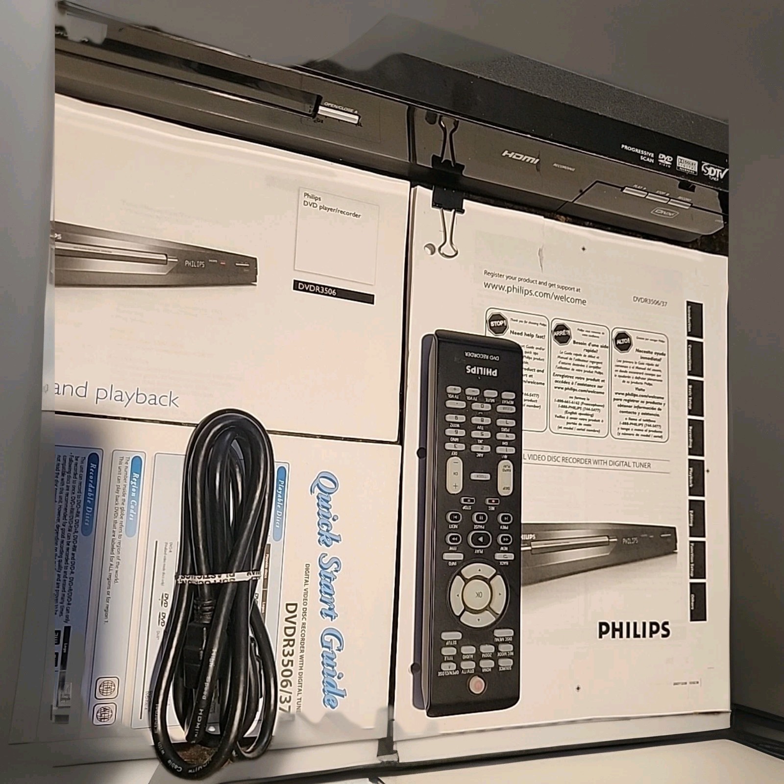 Philips DVDR3505/37 DVD Player HDMI Recorder Tuner w/ Remote - Tested Working