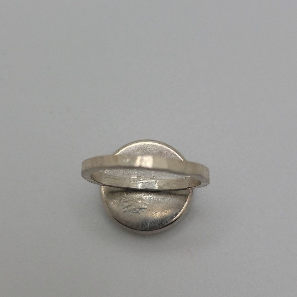 Artisan made green stamp ring silver. Size 5