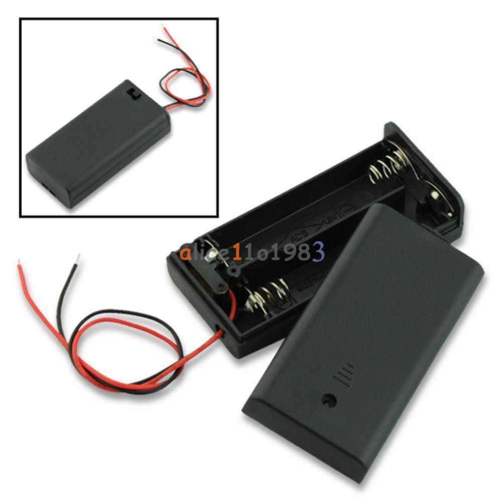 2 AA 2A Battery Holder Box Case with ON/OFF Switch and Cover for 2AA battery