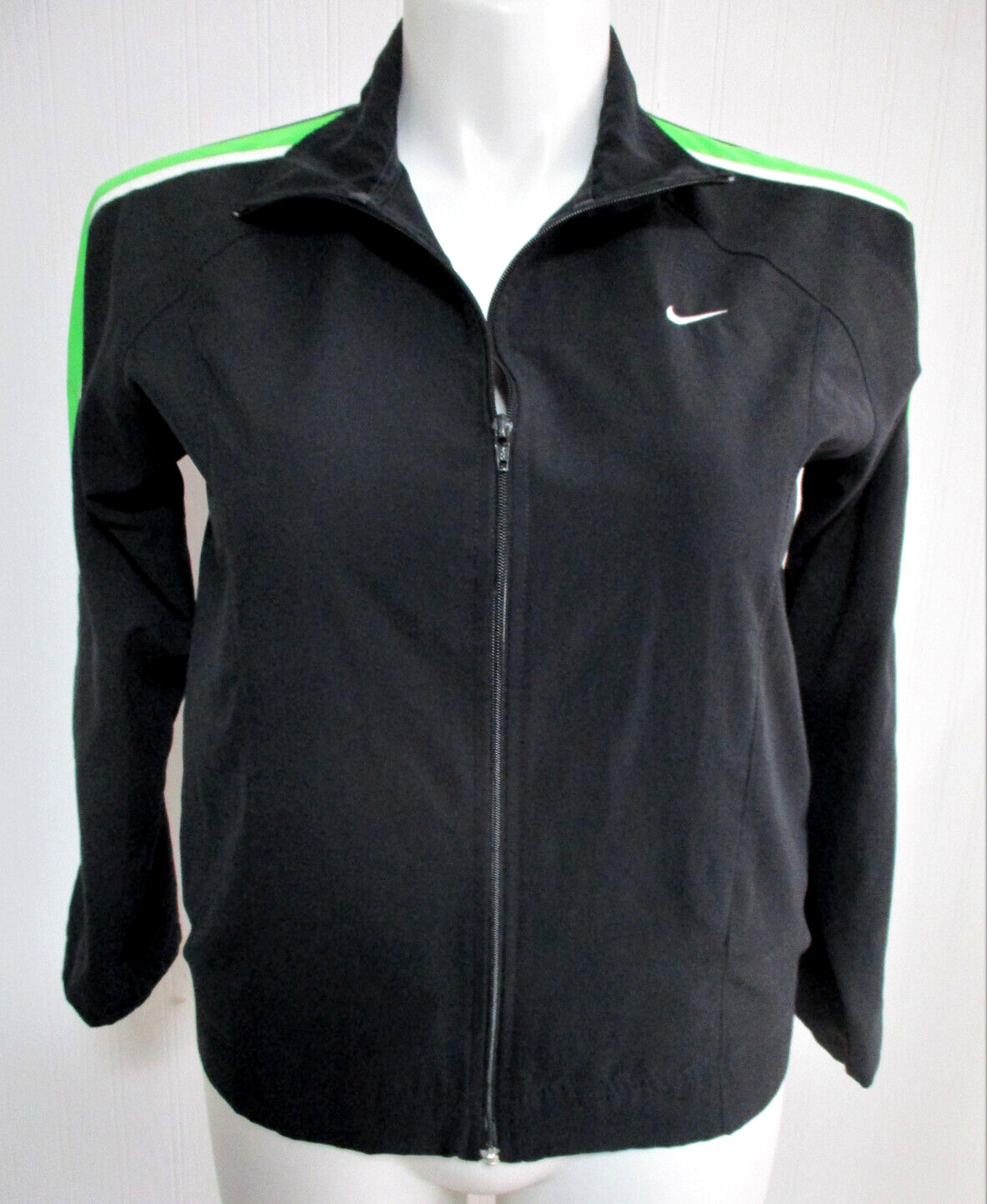 Nike Jacket Zip Up Women's Sz. M 8/10 Swoosh Logo Black Green EUC
