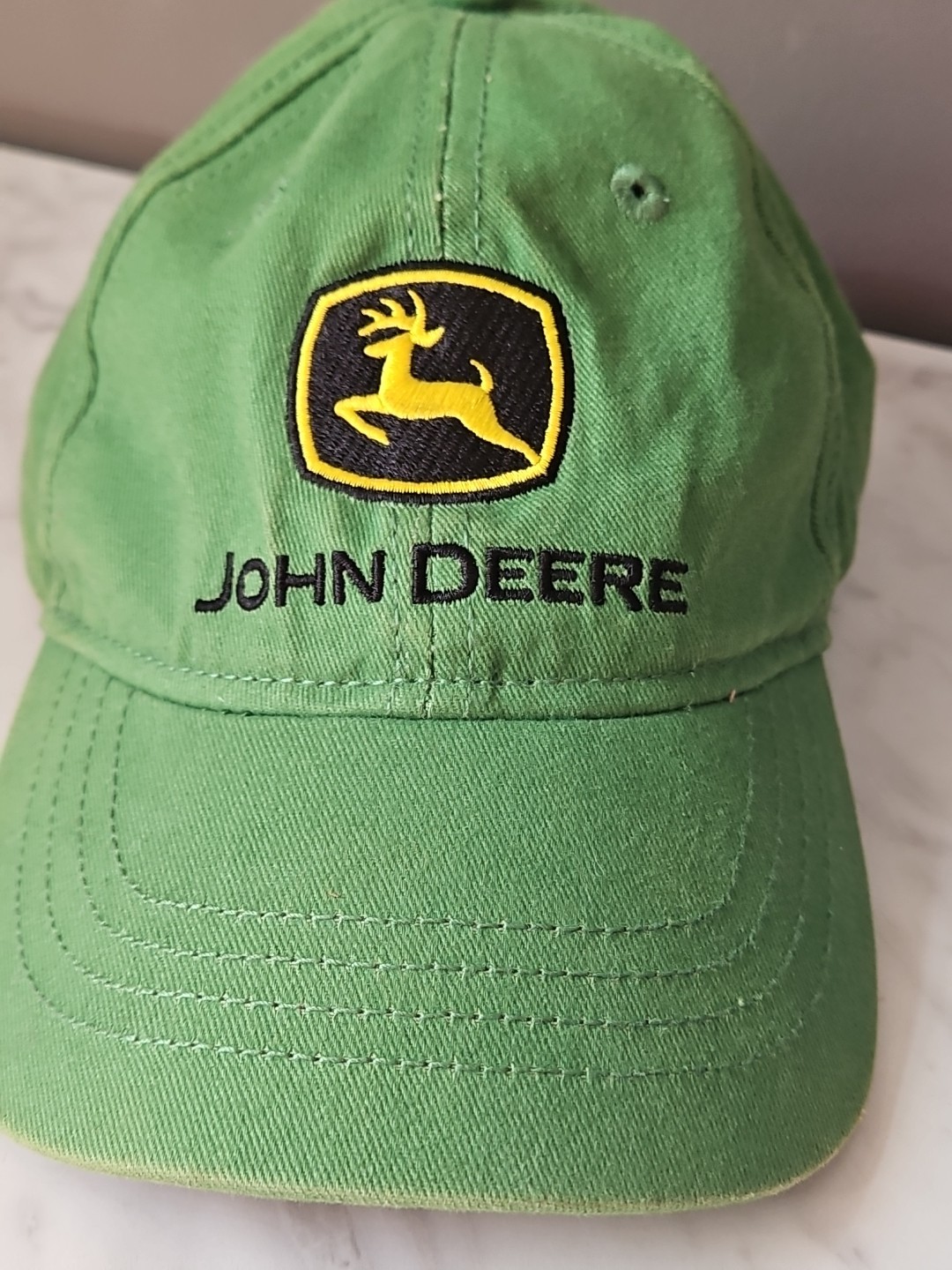 как выглядит John Deere TODDLER 100 Cotton Baseball Cap Hat Green Elastic Back Tractor фото