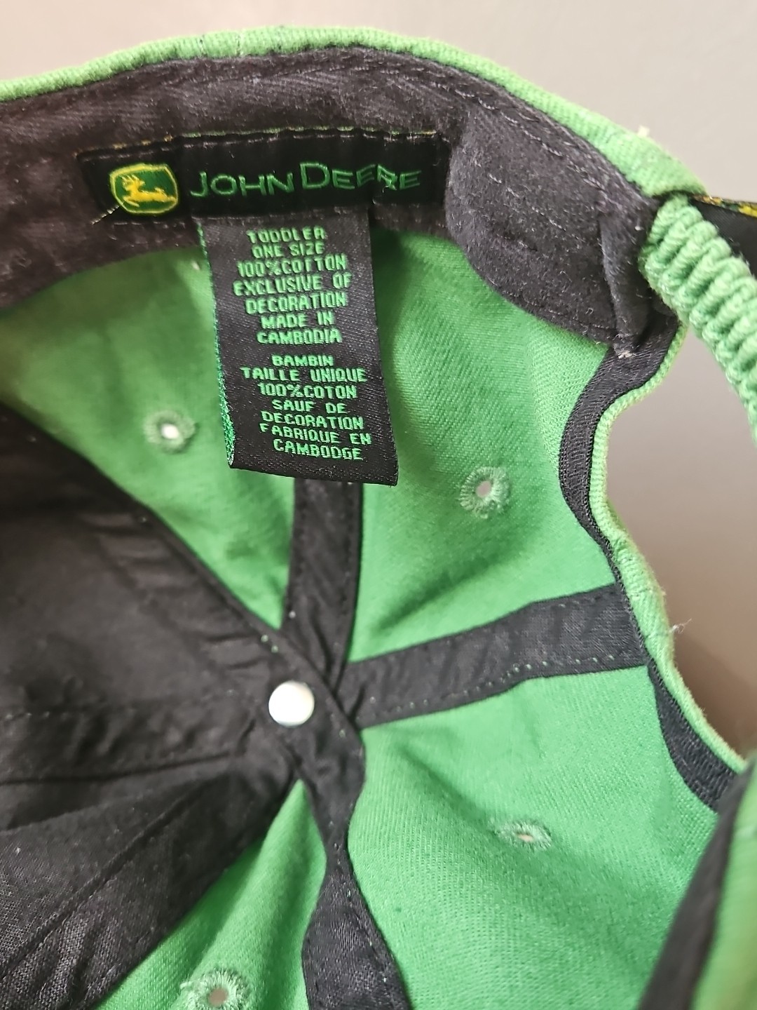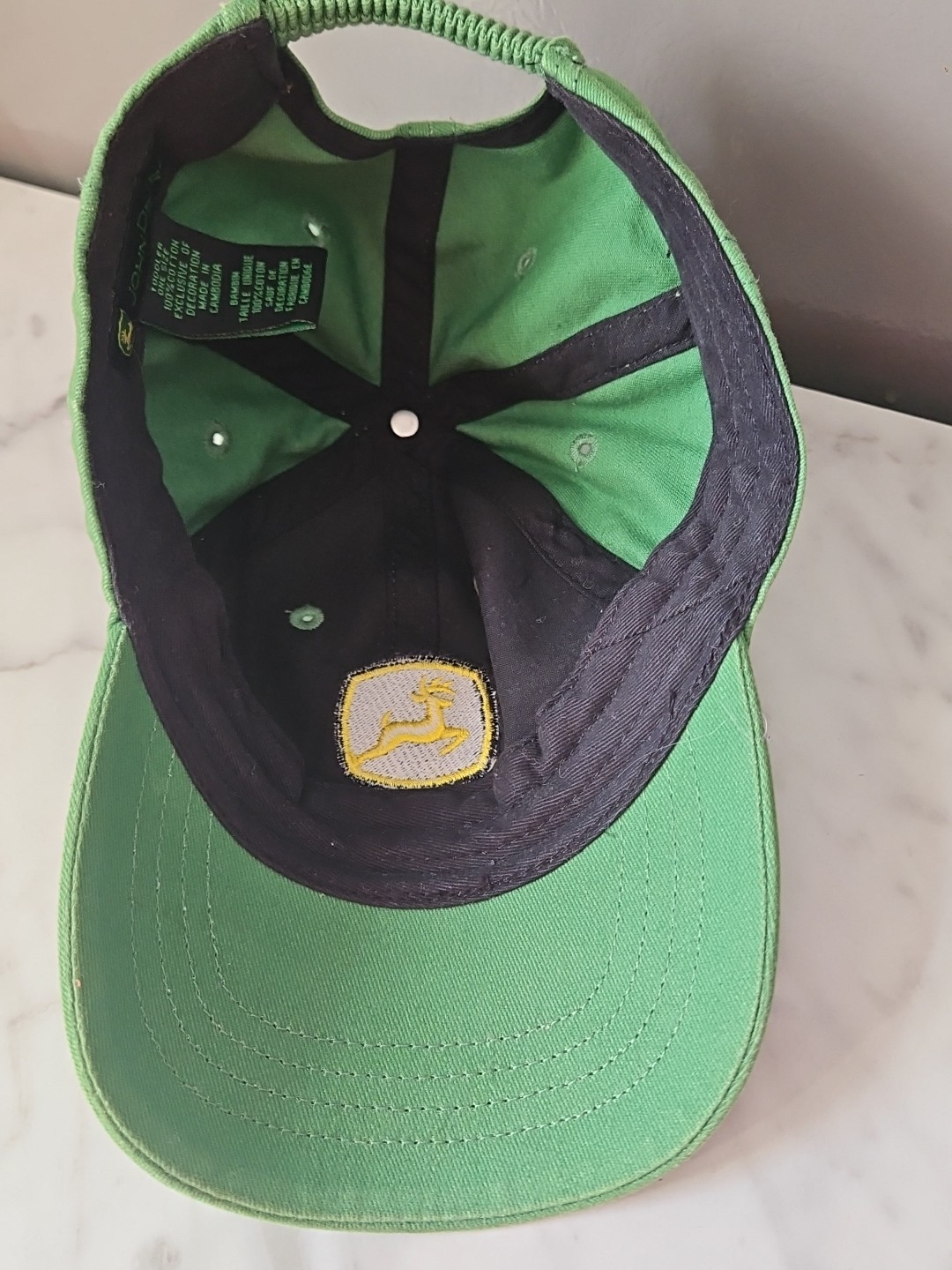 John Deere TODDLER 100 Cotton Baseball Cap Hat Green Elastic Back Tractor
