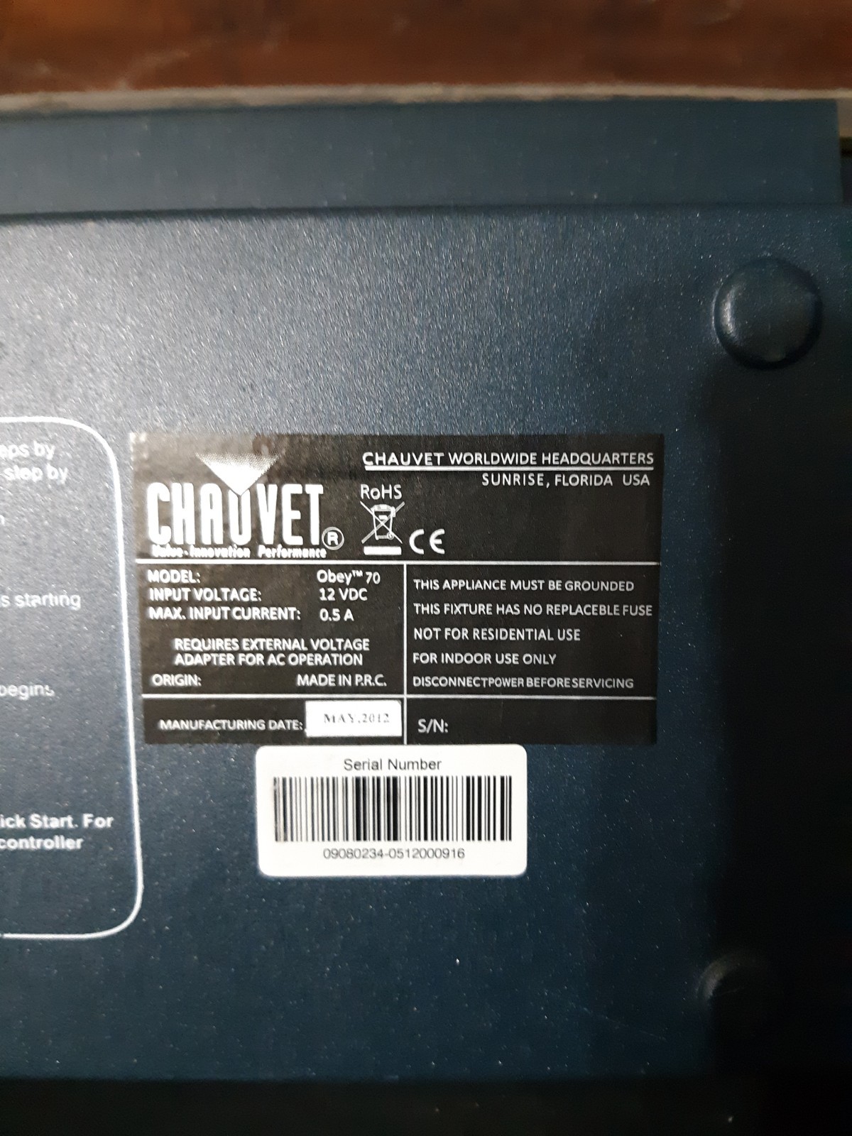 Chauvet Obey 70 Dmx Lighting Control No Power Adapter