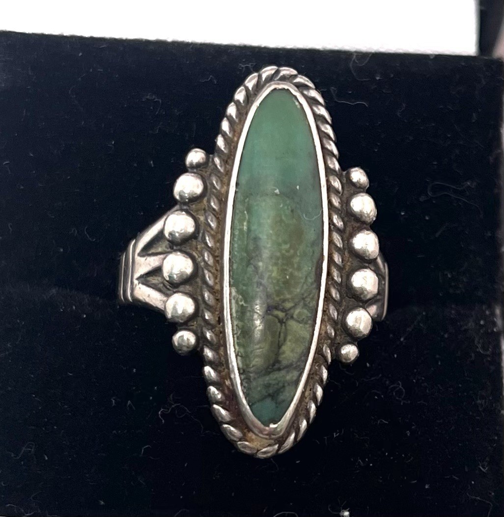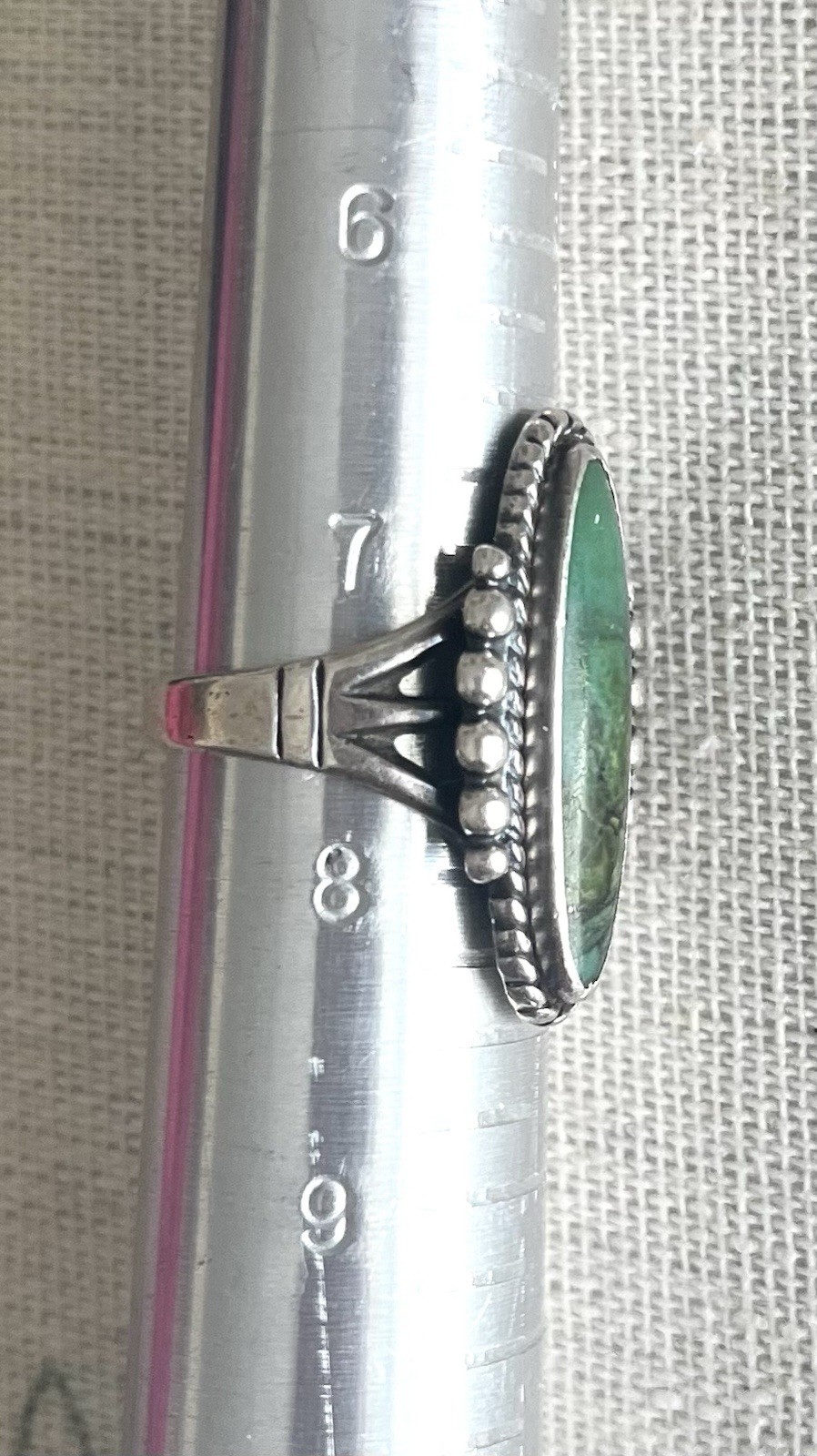 Navajo Marquise Cut Turquoise Signed Sterling Silver Ring Size 7.5, 6.7grams
