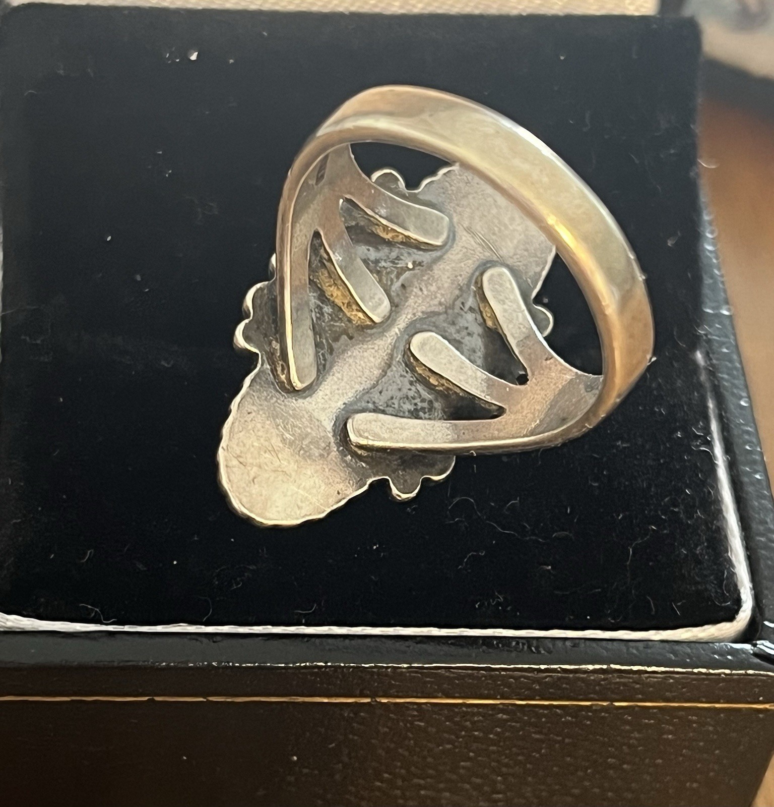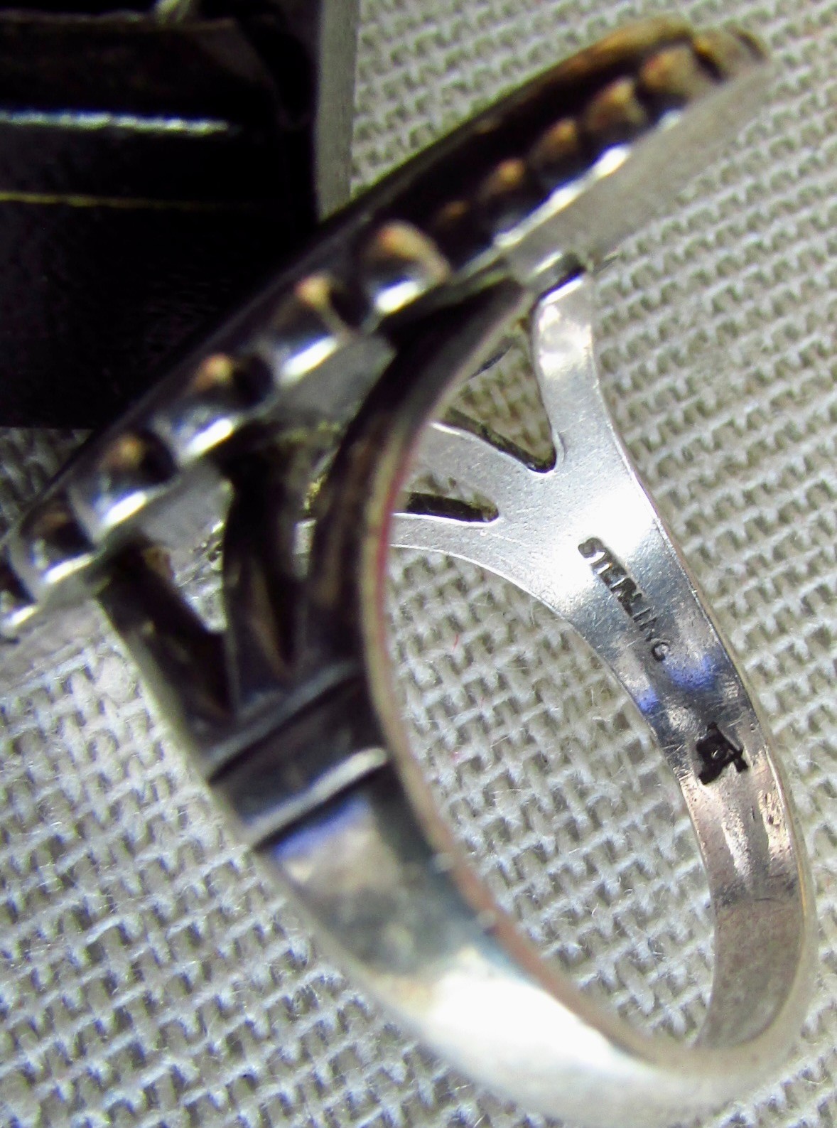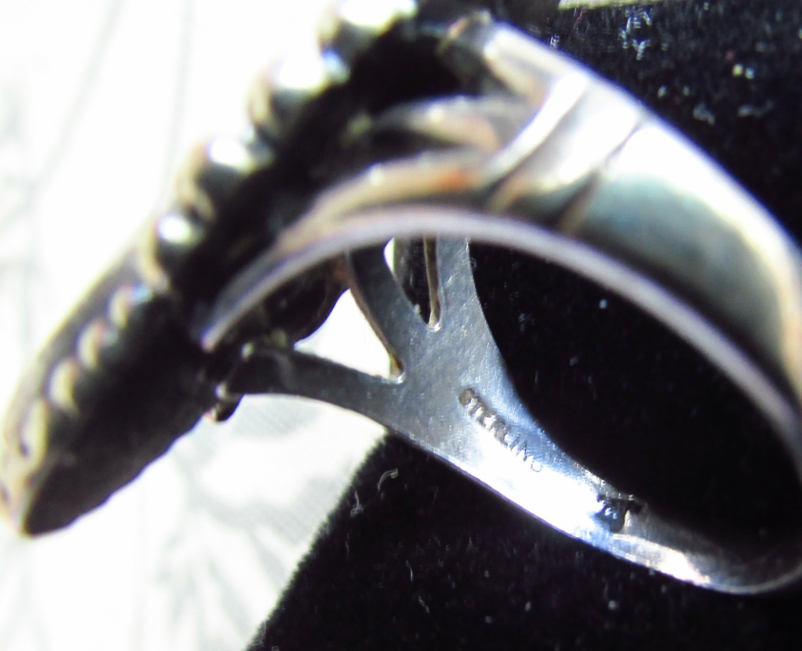 как выглядит Navajo Marquise Cut Turquoise Signed Sterling Silver Ring Size 7.5, 6.7grams фото
