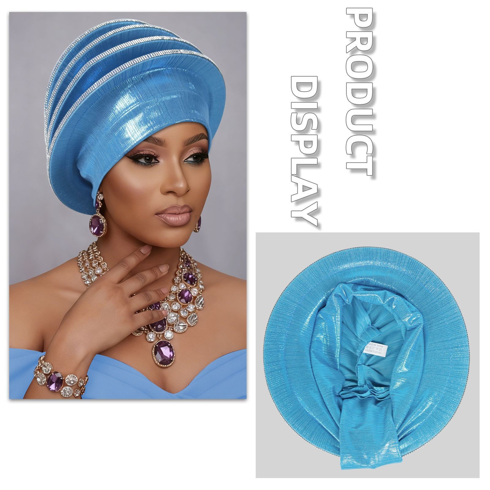 как выглядит Nigeria Headpiece Hat Wedding Party Auto Gele Diamonds Spiral Beret Turban Cap фото